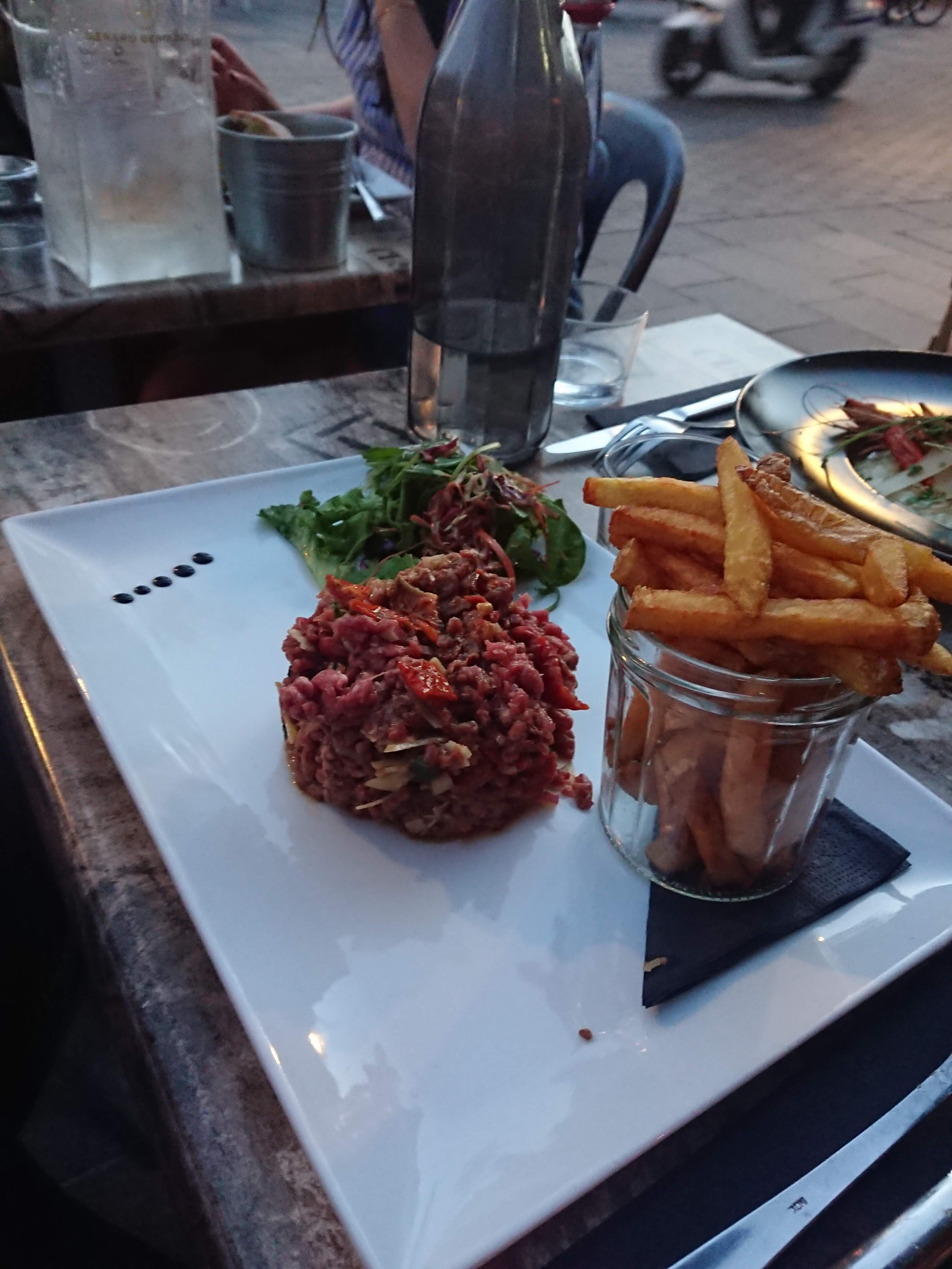 Des frites maison à tomber !! Je pourrai y revenir rien que pour leurs frites, toutes croustillantes. Le tartare que j'ai pris est un peu trop épicé, je n'avais plus le goût de la viande. Le prix du menu est très intéressant et le choix de la carte est varié. Le personnel est agréable. J'y reviendrai avec plaisir en plus des frites