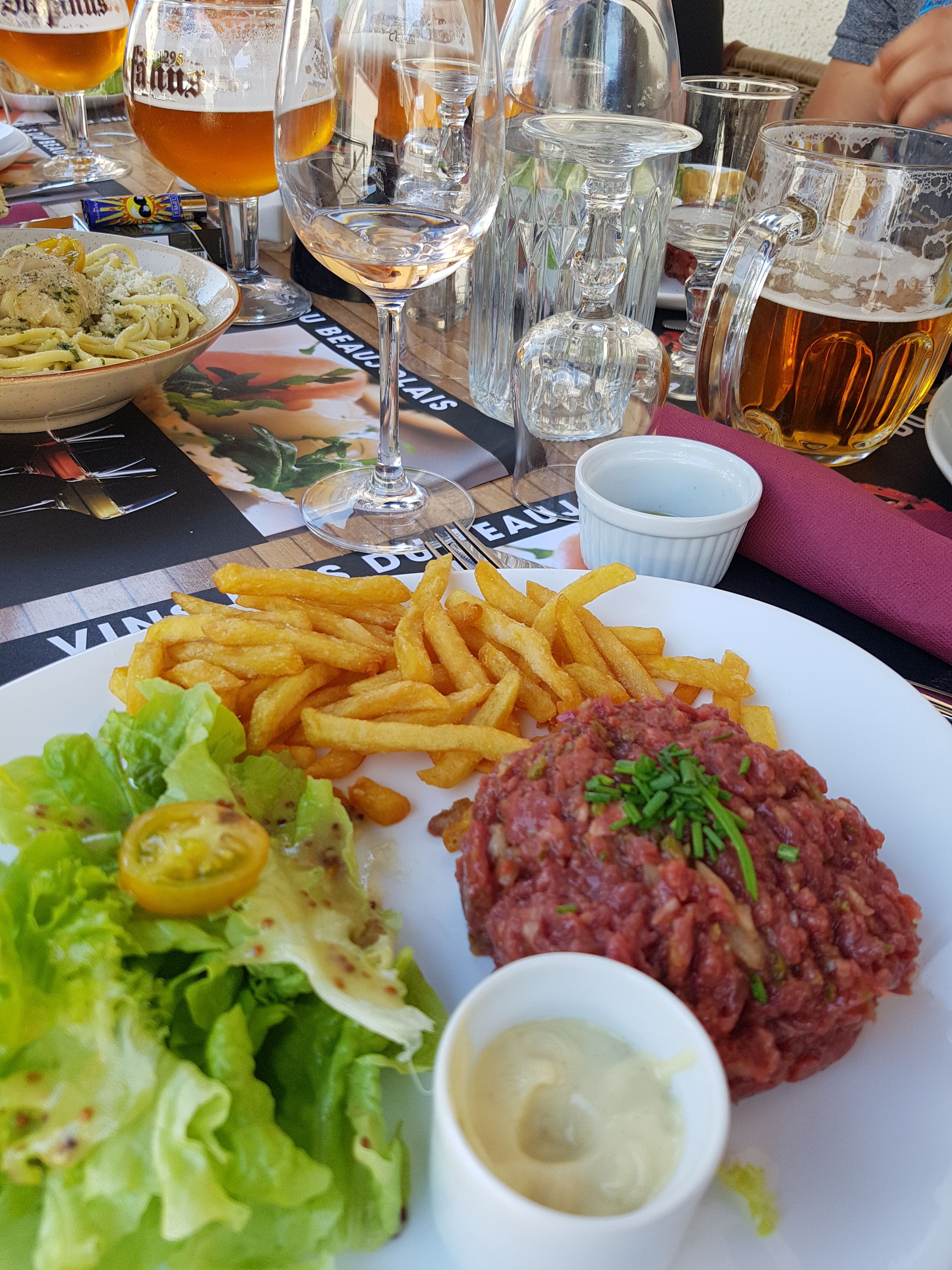 Repas de midi, service rapide, steak tartare bien assaisonné et bon