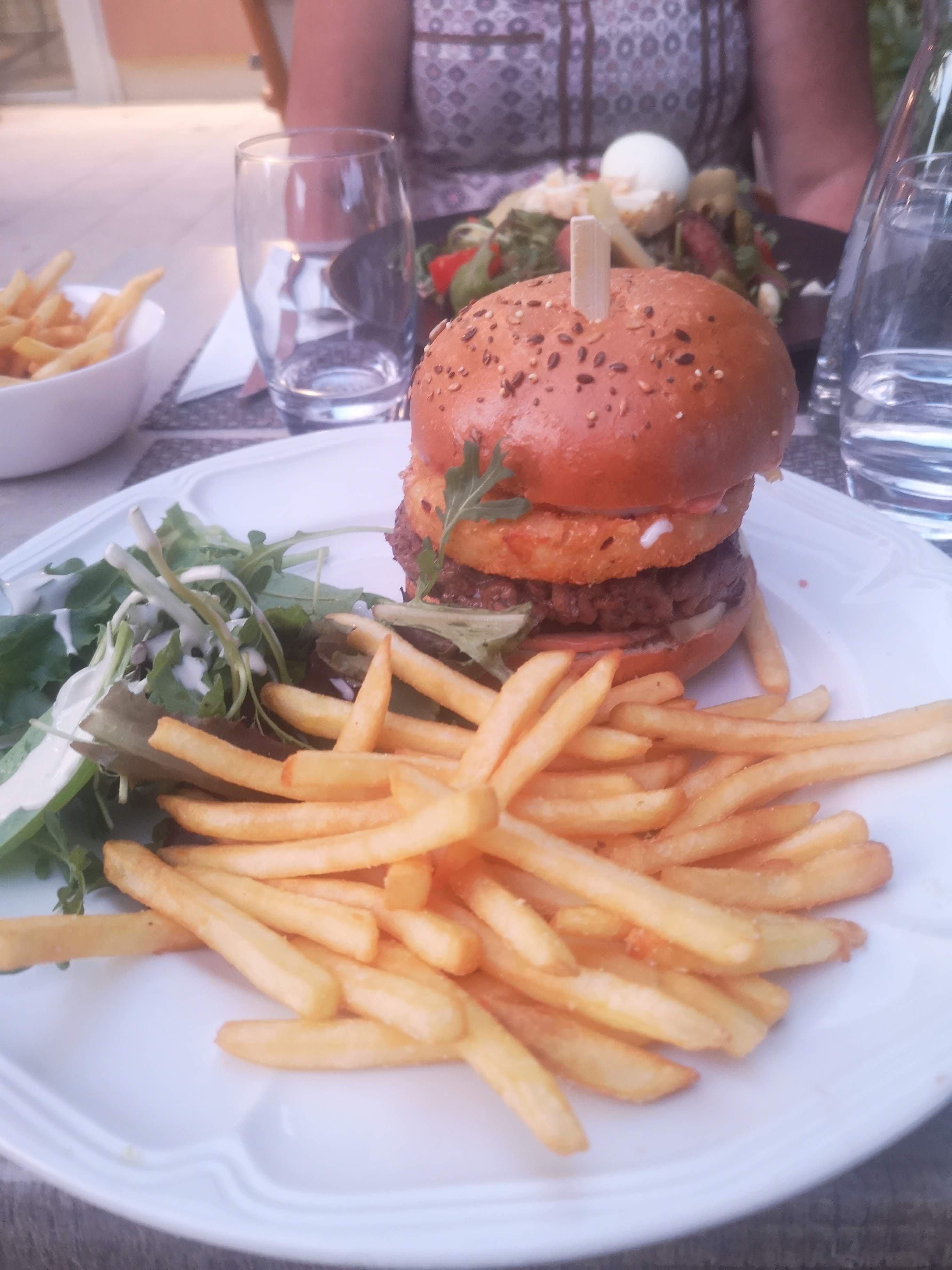 Simple mais bon et efficace. Tres joli cadre au bord de la piscine. Service rapide personnel tres sympathique.
