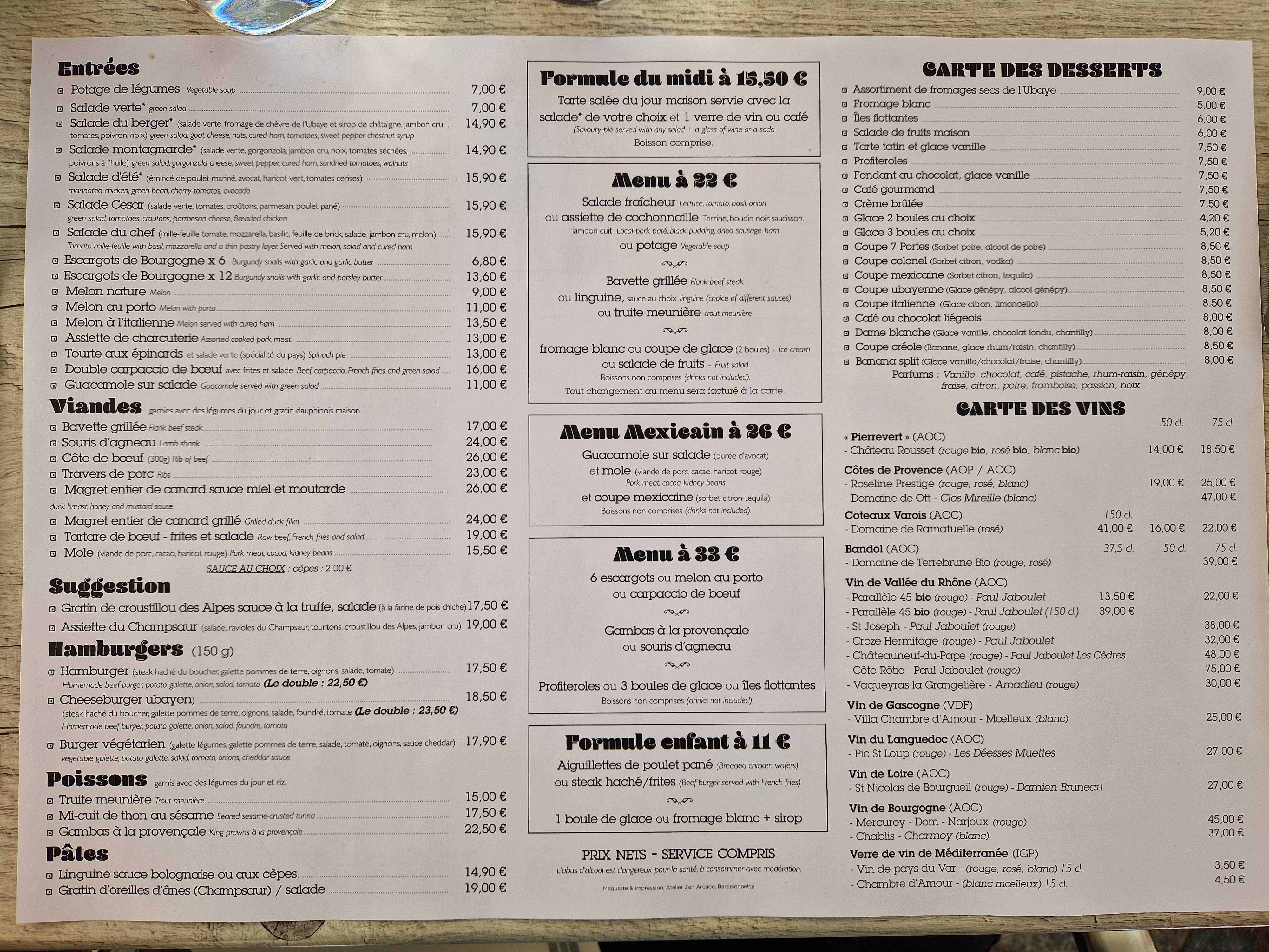 Un pur moment magic tous à été parfait jusqu’au dessert rien à redire ni plus ni moins que le meilleur restaurant de Barcelonette et en plus pas cher le service agréable voire amical et le lieu est superbe un vrai restau de vacances