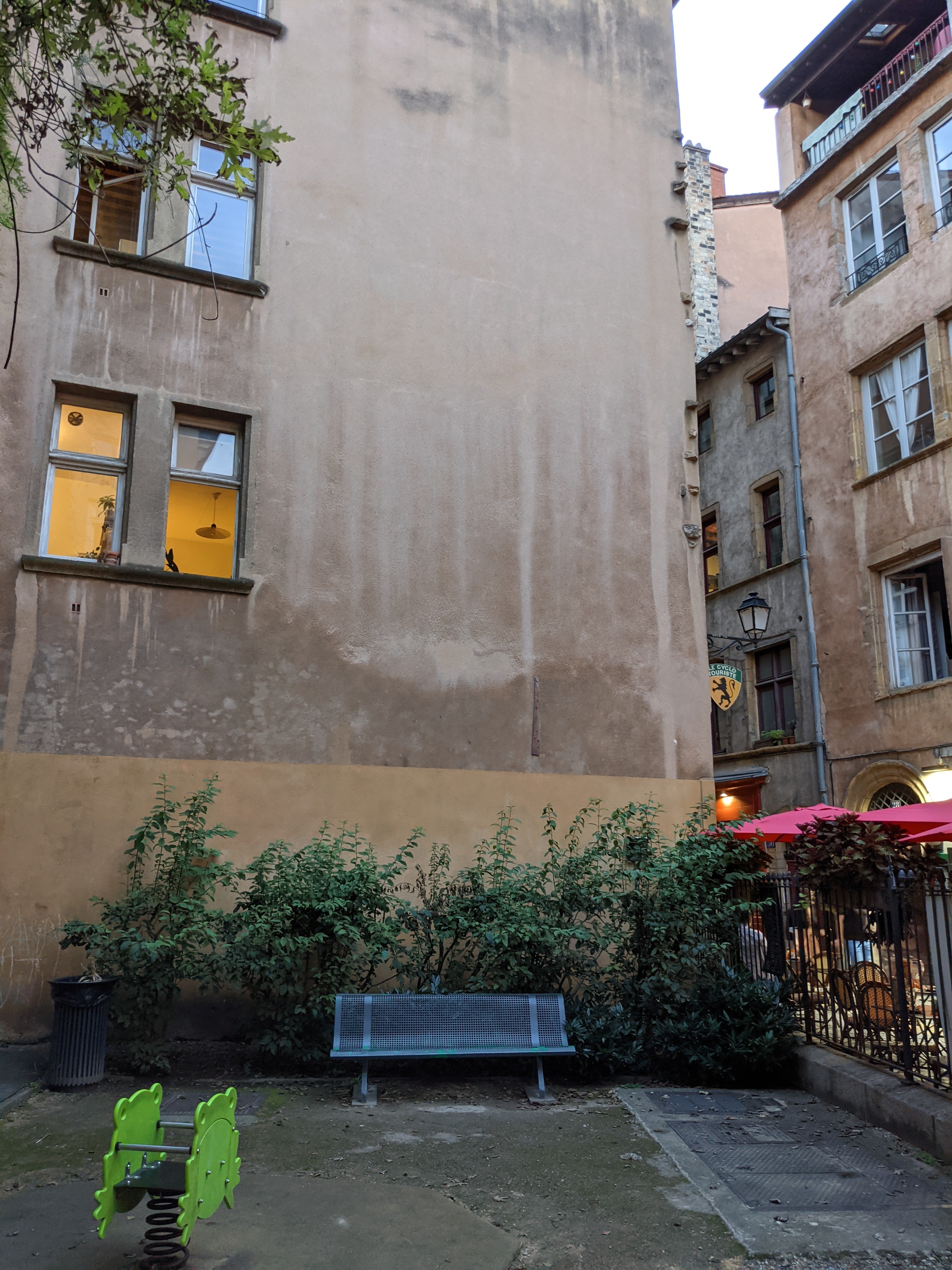 Endroit un peu en retrait de la rue passante mais un endroit que nous recommandons chaudement pour une cuisine de qualité faites vraiment sur place a un prix très tres raisonnable. De plus le personnel est super accueillant. Une bonne adresse du vieux Lyon.
