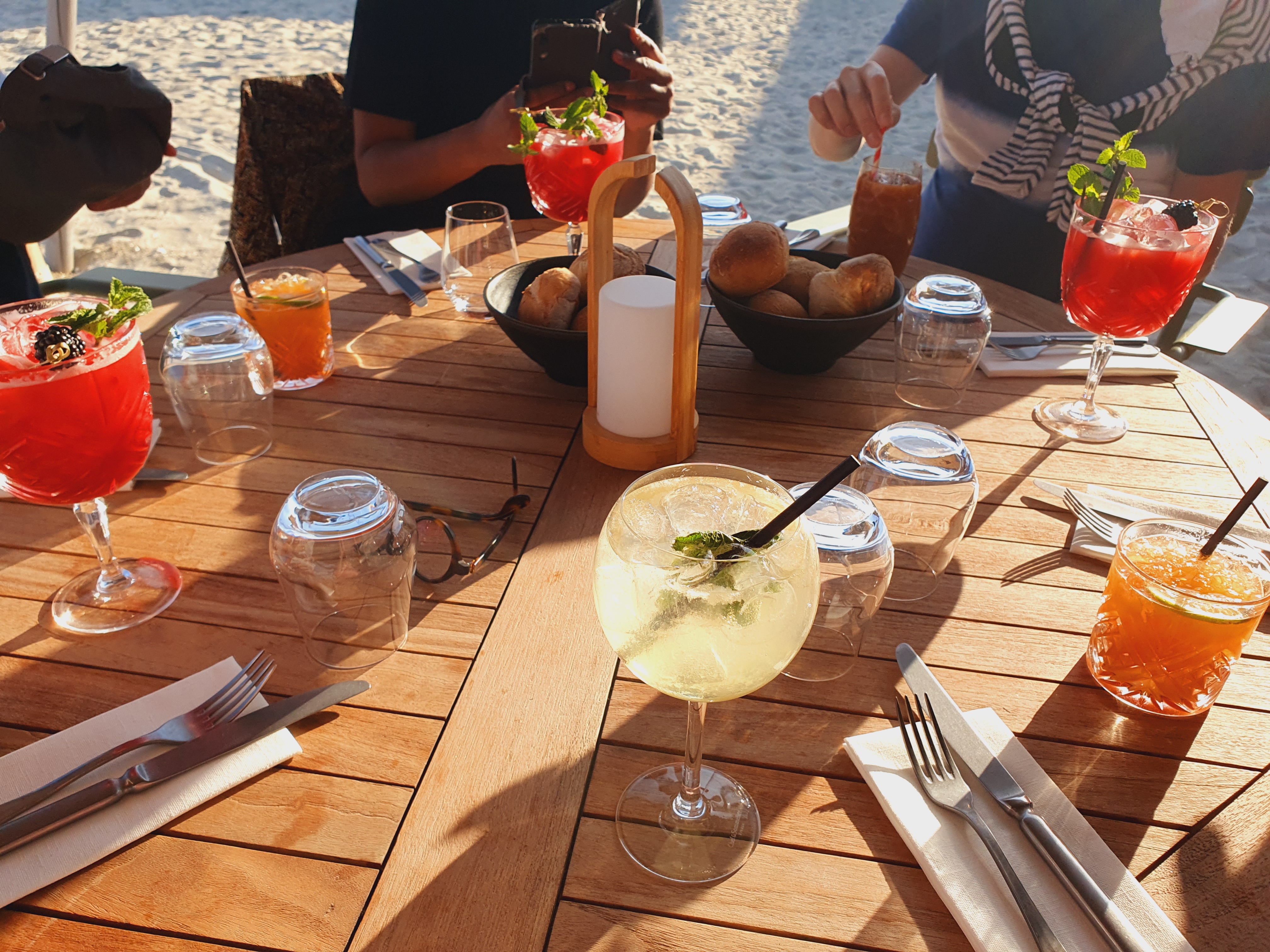 Bière et coktail les pieds dans le sable face à la mer, le bonheur. A noter l'accueil et le service symphatique