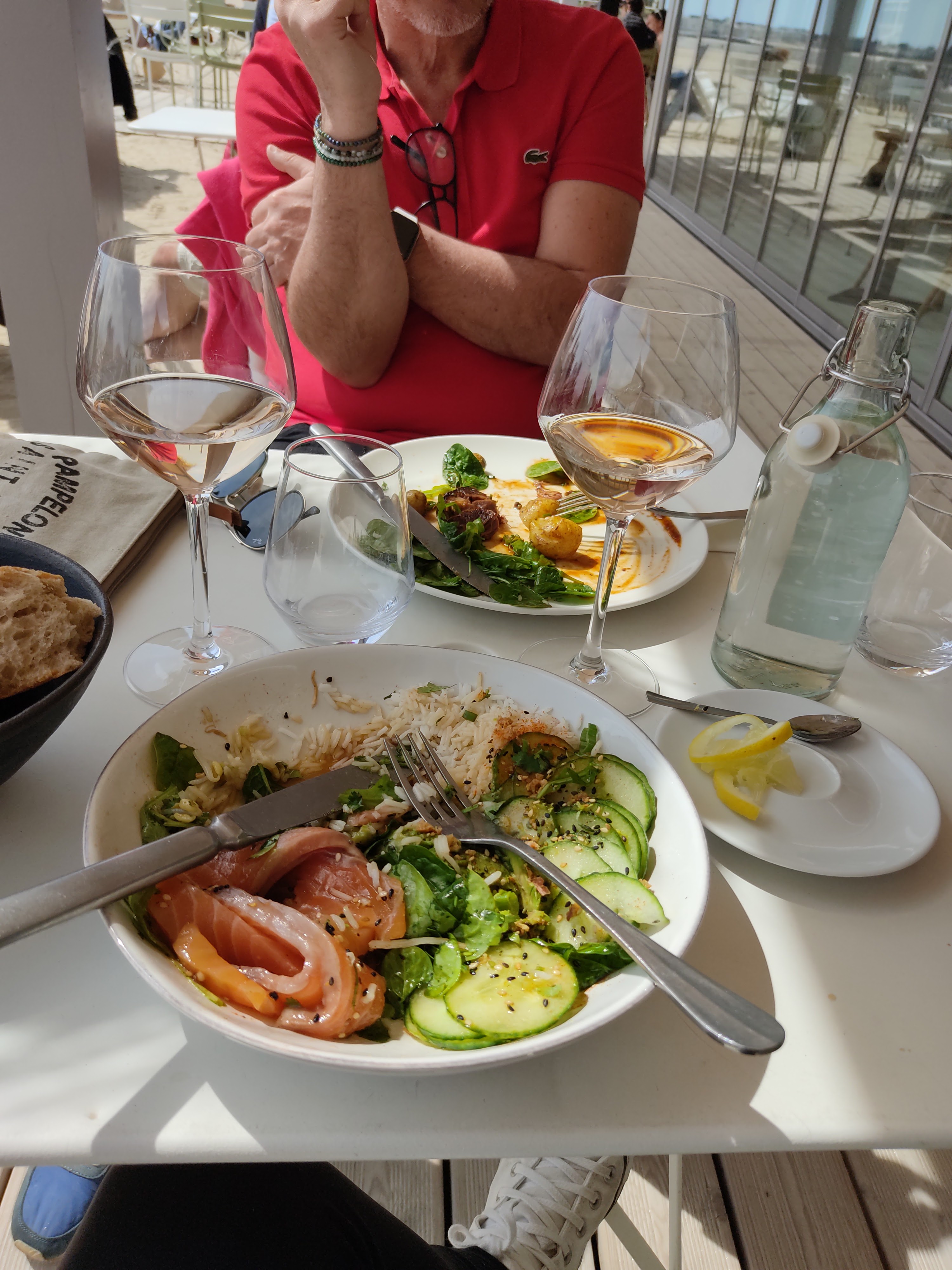 Cadre exceptionnel avec une décoration raffinée sans être oppressante. Accueil et staff super aimable et très professionnel avec une fraîcheur qui rend le moment encore plus détendant. La nourriture est de qualité, originale sans pour autant être déstabilisante, les bowls ( que j ai quasi tous testés ) et la lotte étaient même ultra excellents. Mention spéciale pour la patronne avenante et souriante, là barman efficace et amusant et même à la caisse la jeune fille est adorable. Bref un resto de plage comme on en rêve pour passer un moment divin et déguster des produits vraiment frais ( on a aucun mal à les croire quand ils disent fait maison !). Je ne crois pas connaître de meilleur adresse que la cote :) Allez y sans hésiter j y ai personnellement mangé tous les jours du WE.