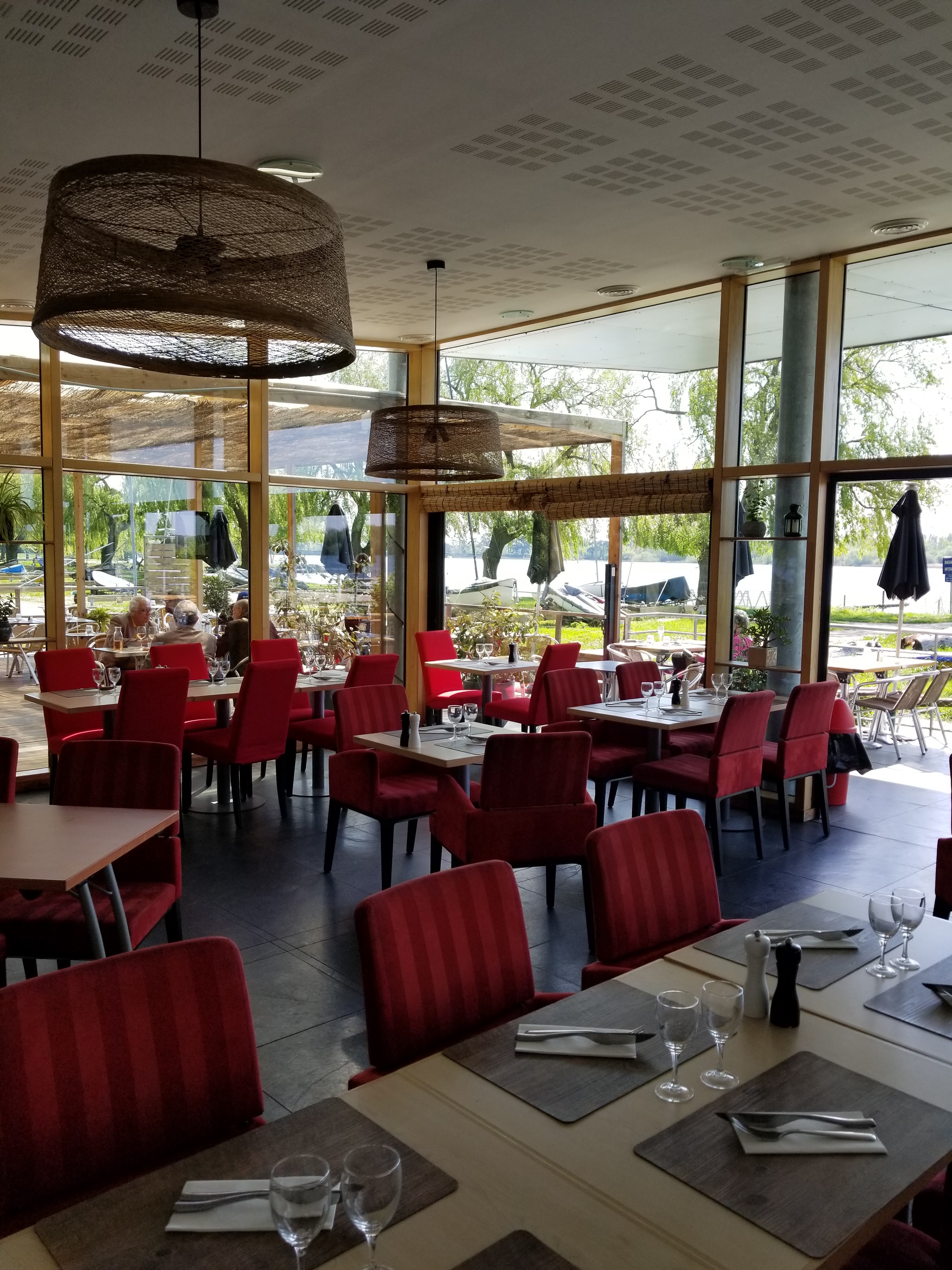 Lieu très agréable et bénéficiant d'une très belle vue sur le lac. Plats très bon avec un bon rapport qualité/prix. Le côte du du Rohn servi au verre n'était pas bon. Accès au restaurant compliqué malgré avoir réservé (la personne ayant pris notre réservation ne nous a pas averti des modalités d'accès assez spécifiques). Il faut dire un mot de passe au gardien à travers un interphone sinon il faut payer pour entré dans la base ou marcher sans avoir d'indications.