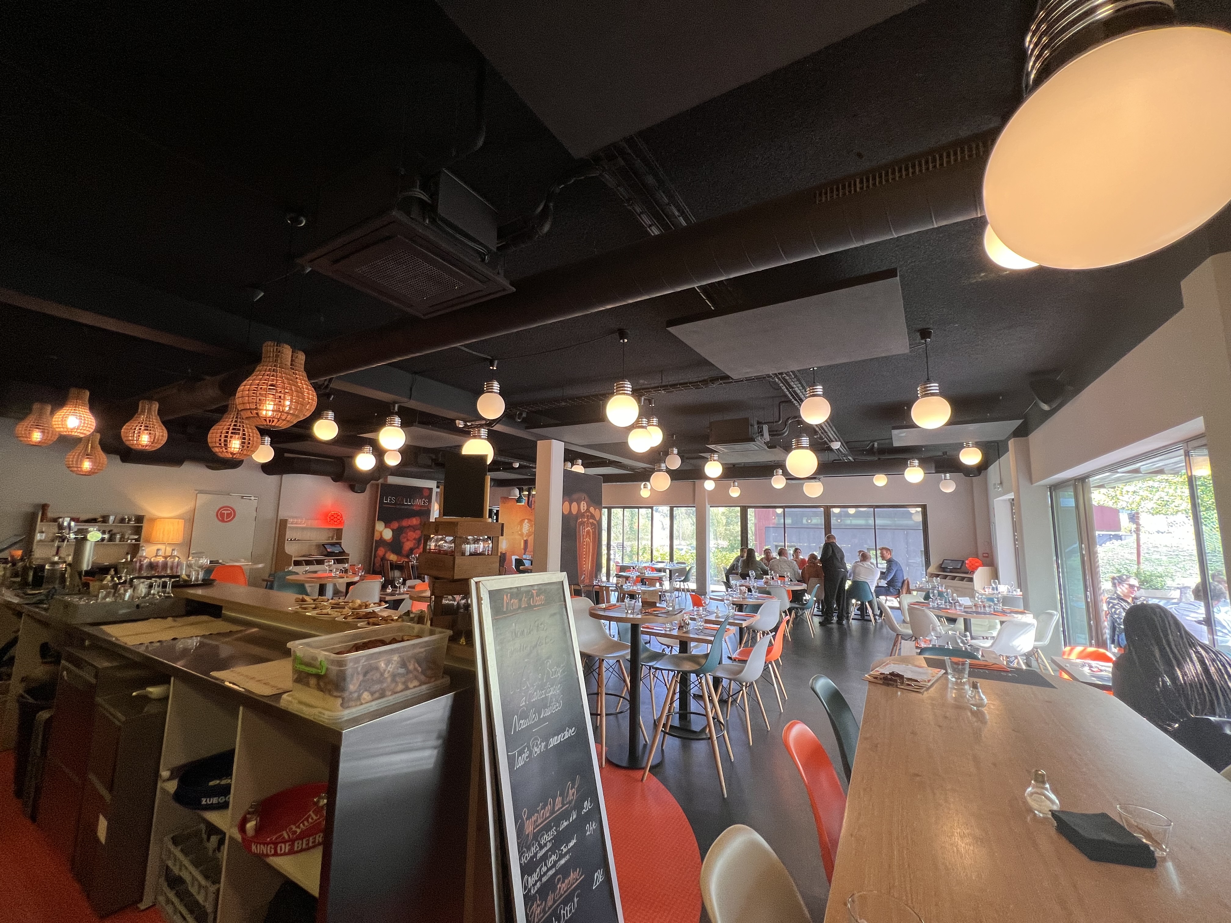 Spacieux, clair, déco actuelle et fraiche. Dispose d'une terrasse pour les beaux jours. Personnel accueillant souriant disponible et très pro ! Possibilité d'accueil pour séminaire ou réunion. Excellent Cocktail dejeunatoire lors de notre réunion avec excellents vins. Belle carte du restaurant qui donne envie. 👍