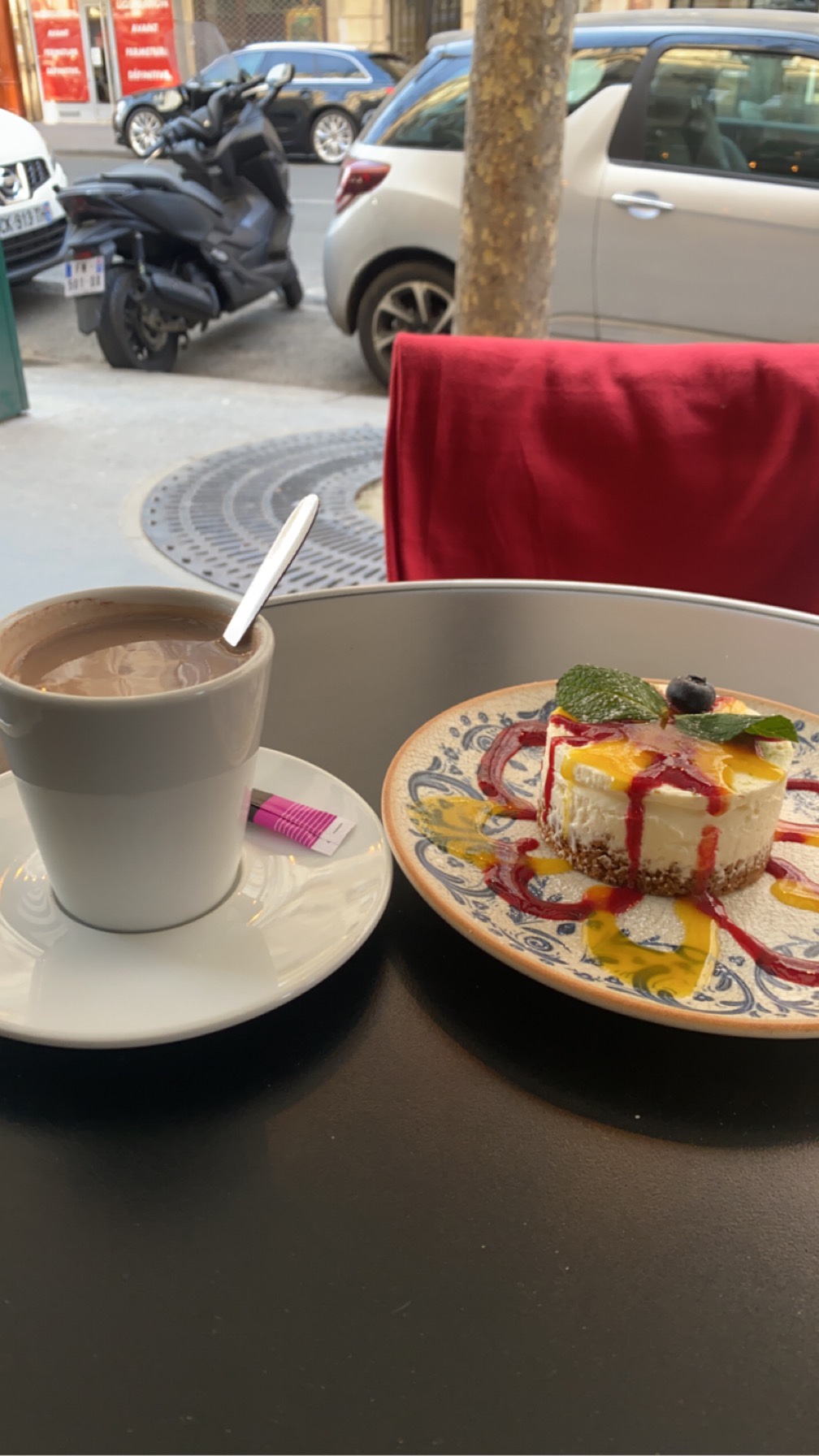 De passage sur l’avenue, je cherchais un endroit où prendre mon goûter. J’ai été abordée par une dame qui m’a proposé de jeter un coup d’œil au menu, sans agressivité ni insistence (comme on peut le voir souvent dans le coin) et que vois-je? Mon graal, ils proposent un cheesecake. Au prix paris 7, oui, mais un grand cheesecake. Puis honnêtement si c’est pour débattre sur les prix, il faut changer d’arrondissement. Évidemment qu’il y a moins cher, mais pas là. Puis le prix va avec « l’expérience parisienne ». Étant moi même expatriée de Paris depuis plus de 10 ans, c’est ce genre de petit café qui me rappelle tout ce que j’aime de notre belle capitale. Je remercie aussi le serveur qui était aimable et poli, c’est aussi à noter dans ce coin là ! Proximité du bus 42 qui vous emmène aux champs aussi.