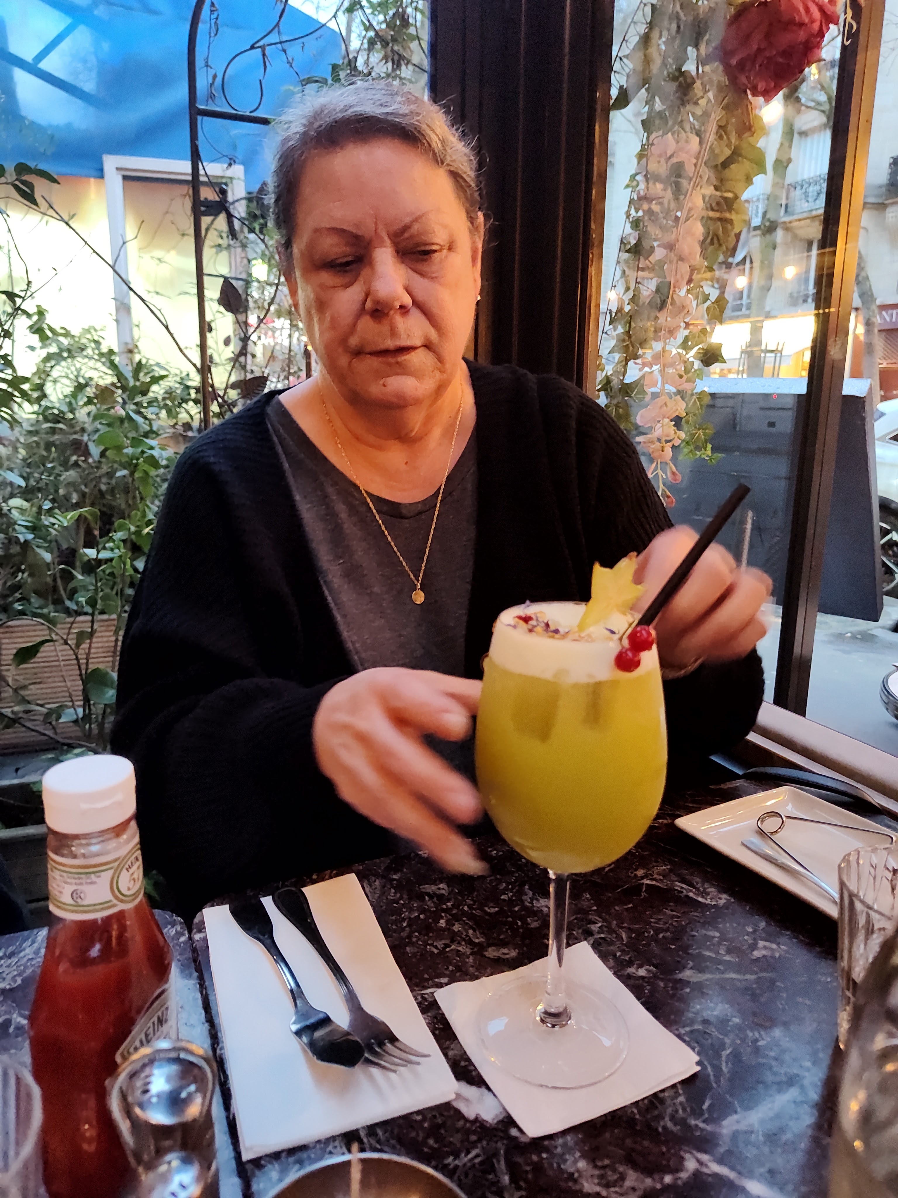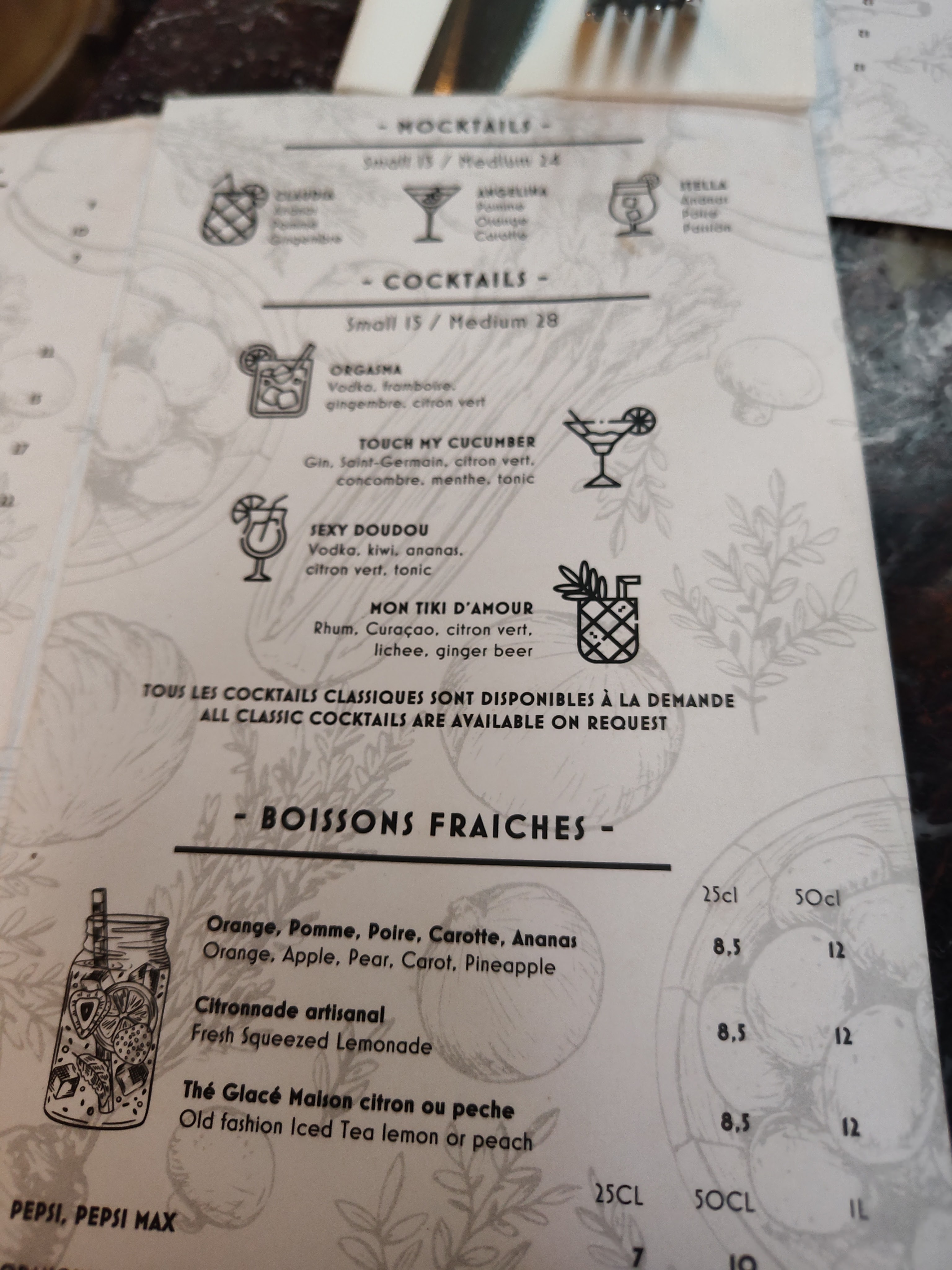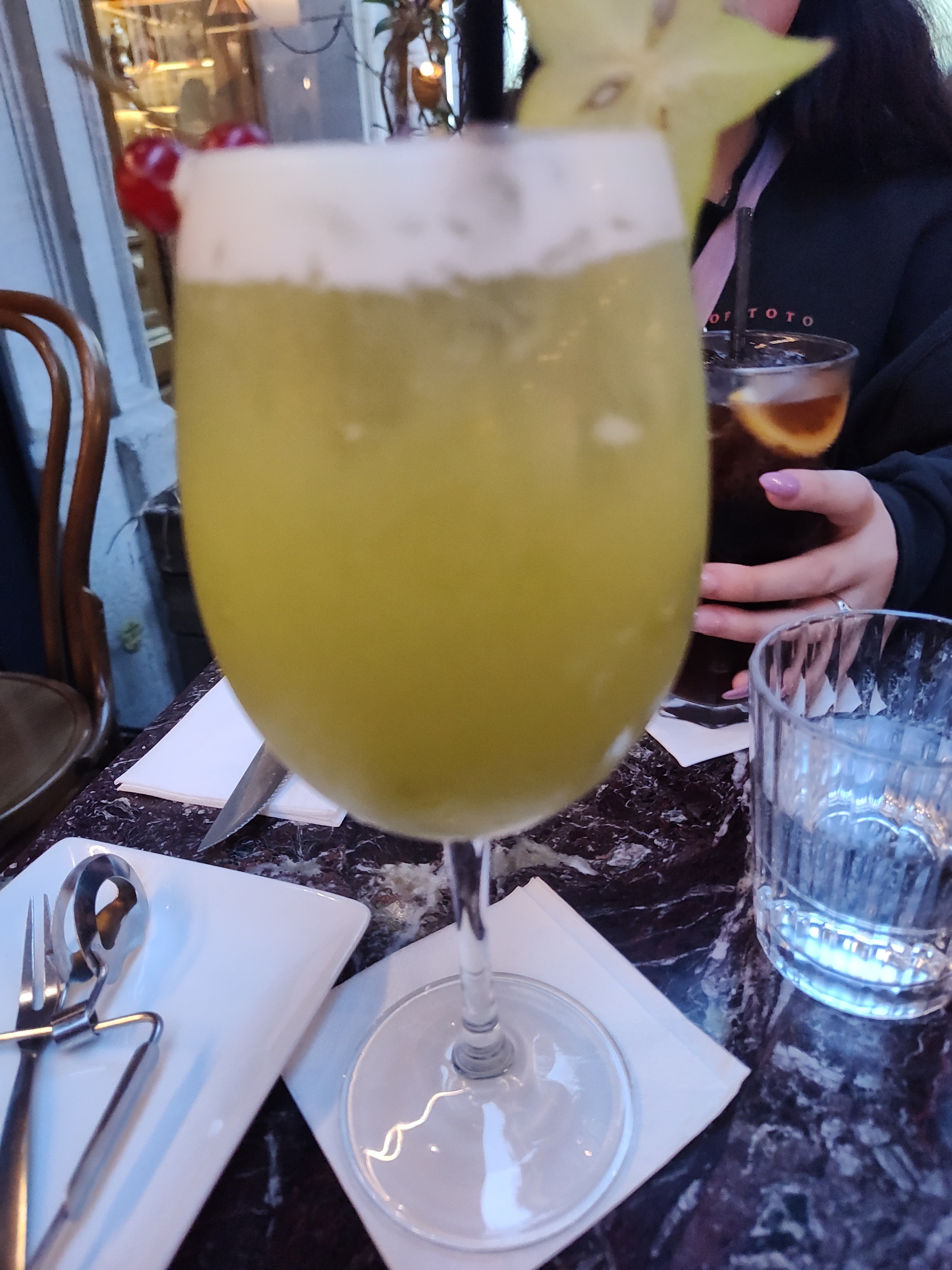 Nous avons passé un excellent dernier repas à Paris ici. Notre serveur Elliot était incroyable, il était très attentionné et drôle. Même si l'endroit était occupé, il veillait toujours à nous surveiller tout au long de notre repas. La soupe à l'oignon était absolument délicieuse et savoureuse. Je recommande vraiment de prendre le cocktail « touch my concombre », c'était tellement rafraîchissant ! Quant à notre repas, nous avons eu le bœuf bourguignon qui était très chaleureux et réconfortant. J'y retournerai certainement la prochaine fois que je viendrai à Paris.