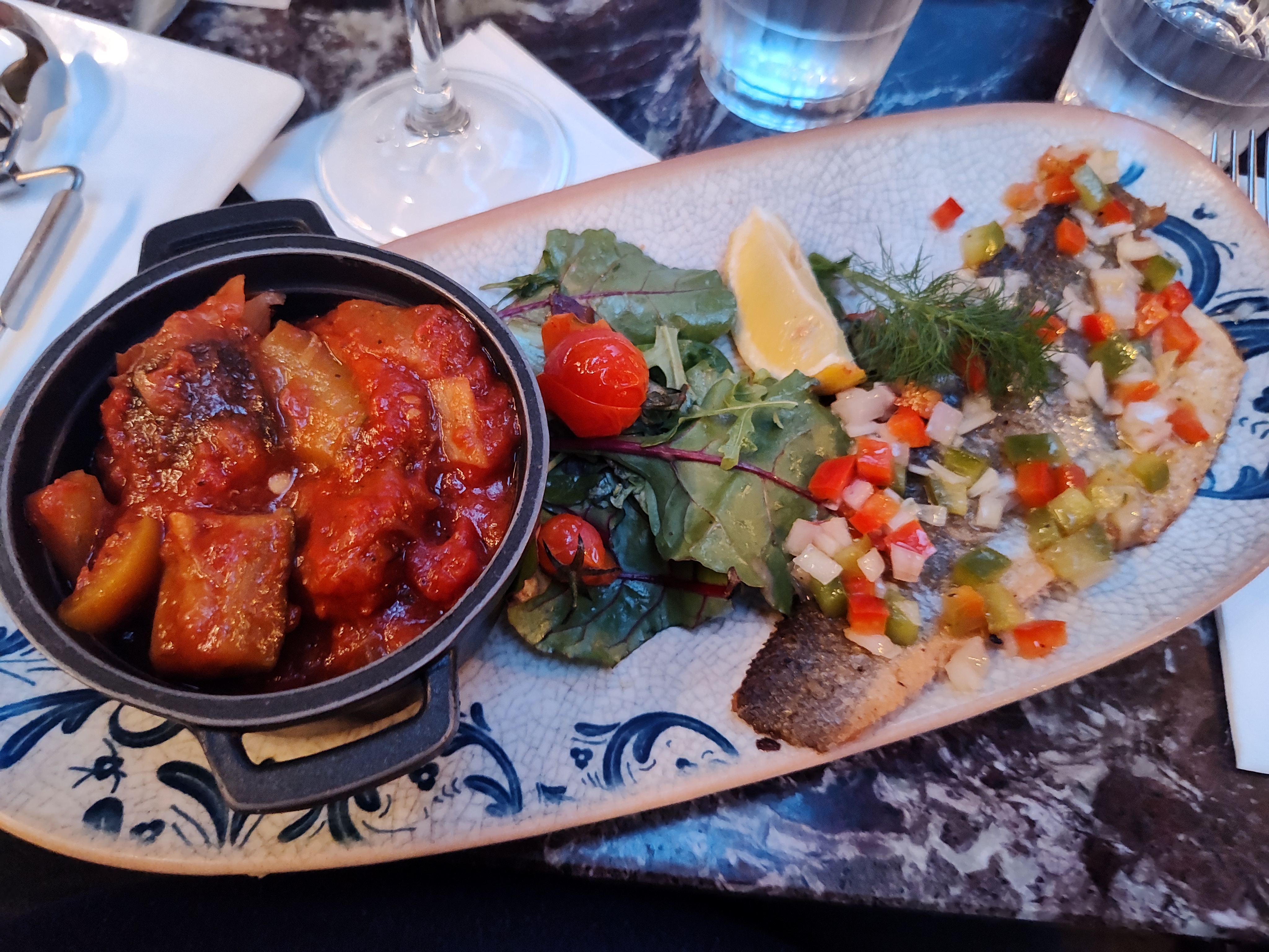 Délicieux bar sur ratatouille. Service attentif, souriant et sympathique !