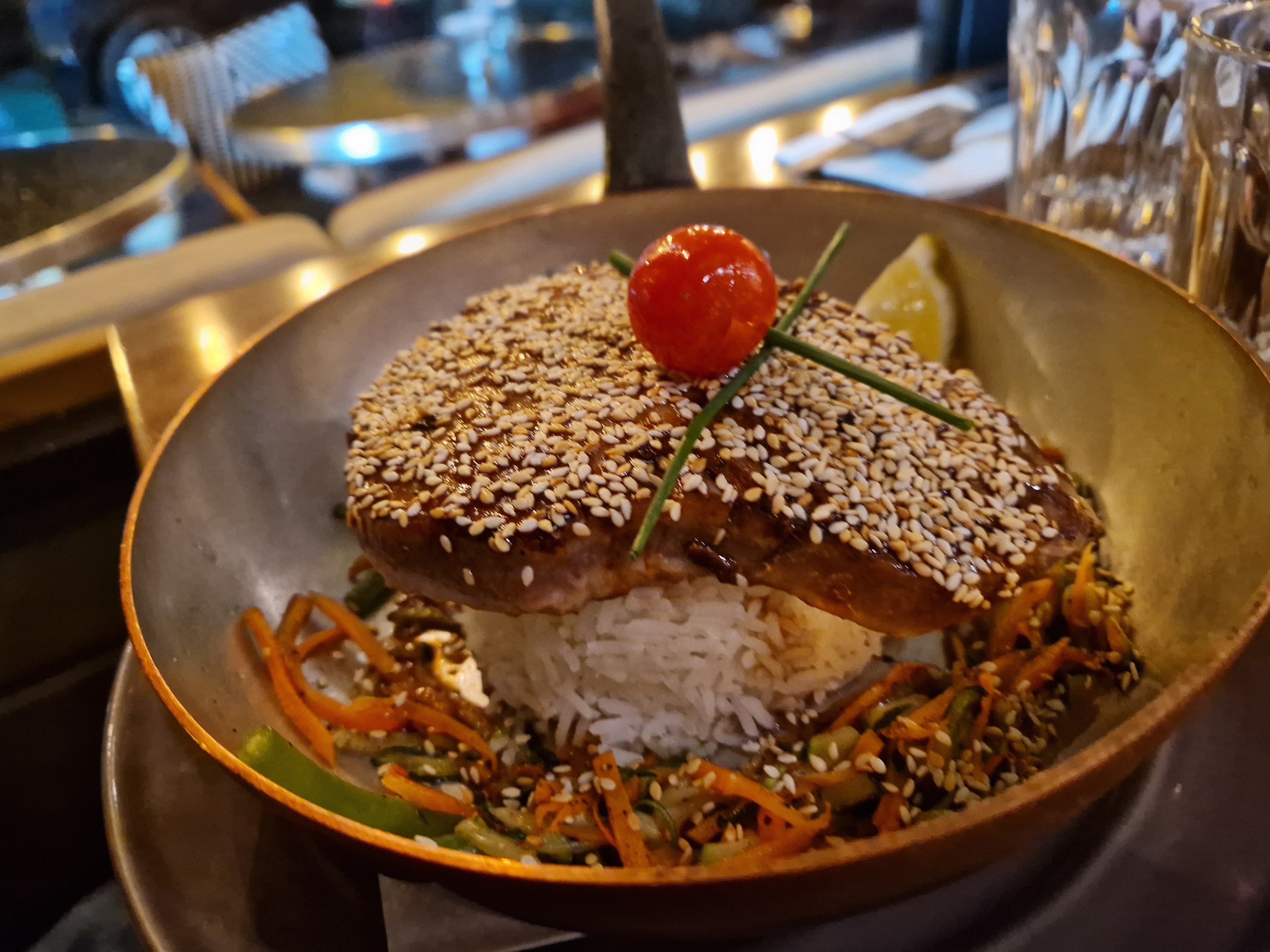Très bon restaurant tartare de thon frais et délicieux bien assaisonner. Tataki de thon parfaitement exécuter. Et faux filet de bœuf tendre et très bonne cuisson. Desserts très bien. Je recommande. Très beau cadre.et personnel agréable et très serviable.