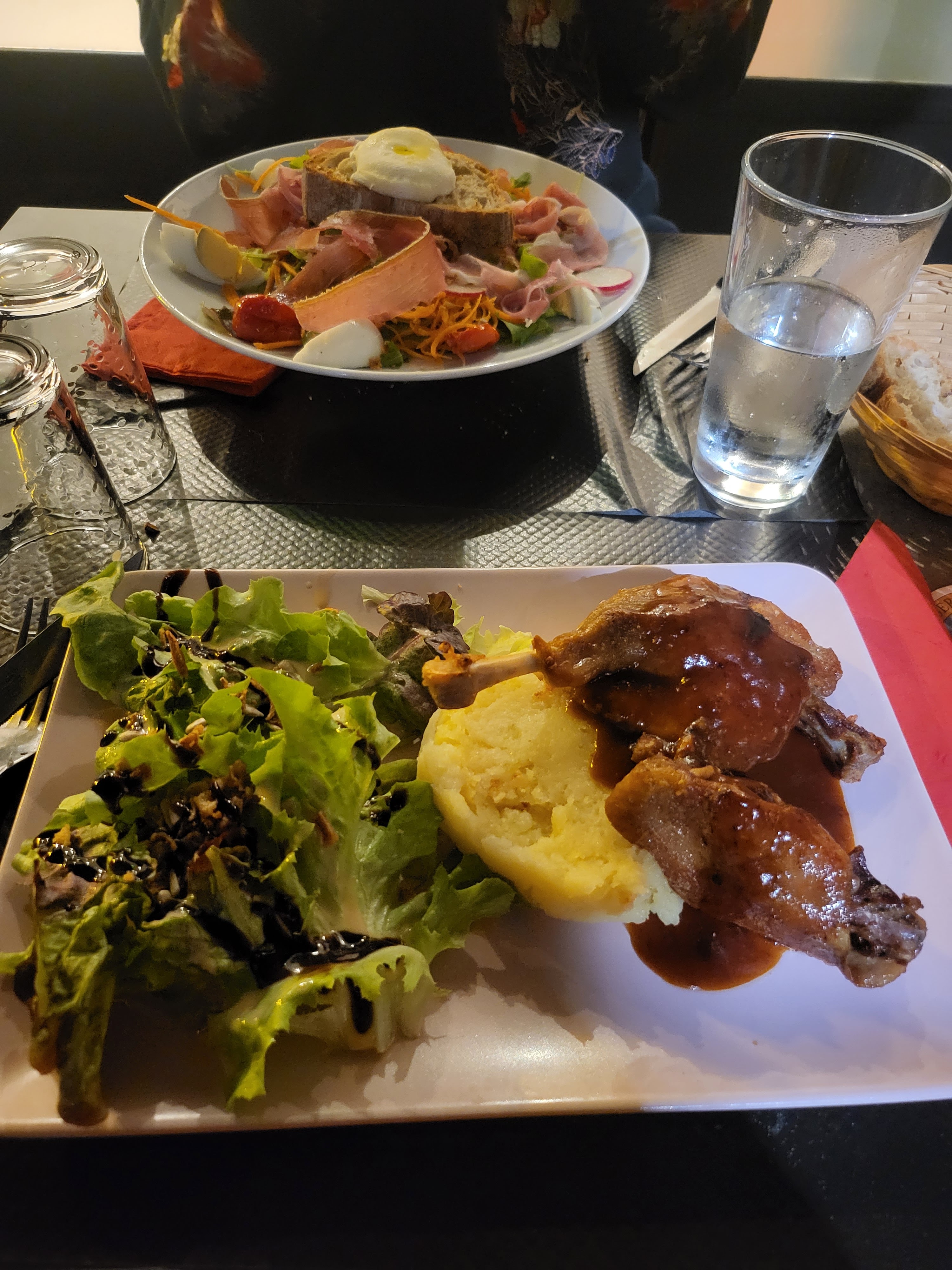 Ce jour restaurant complet lundi des seuls ouverts, Le personnel court, et oublie le magret dans la salade, oublie le pain, au lieu de courir regardez autour de la salle ca évite de repartir les mains vides, et évite des pas, les gésiers à profusion ce n'est peut-être pas utile, j'ai tout de même bien mangé, éviter de tripoter les pieds de table pour les régler pas très hygiénique merci