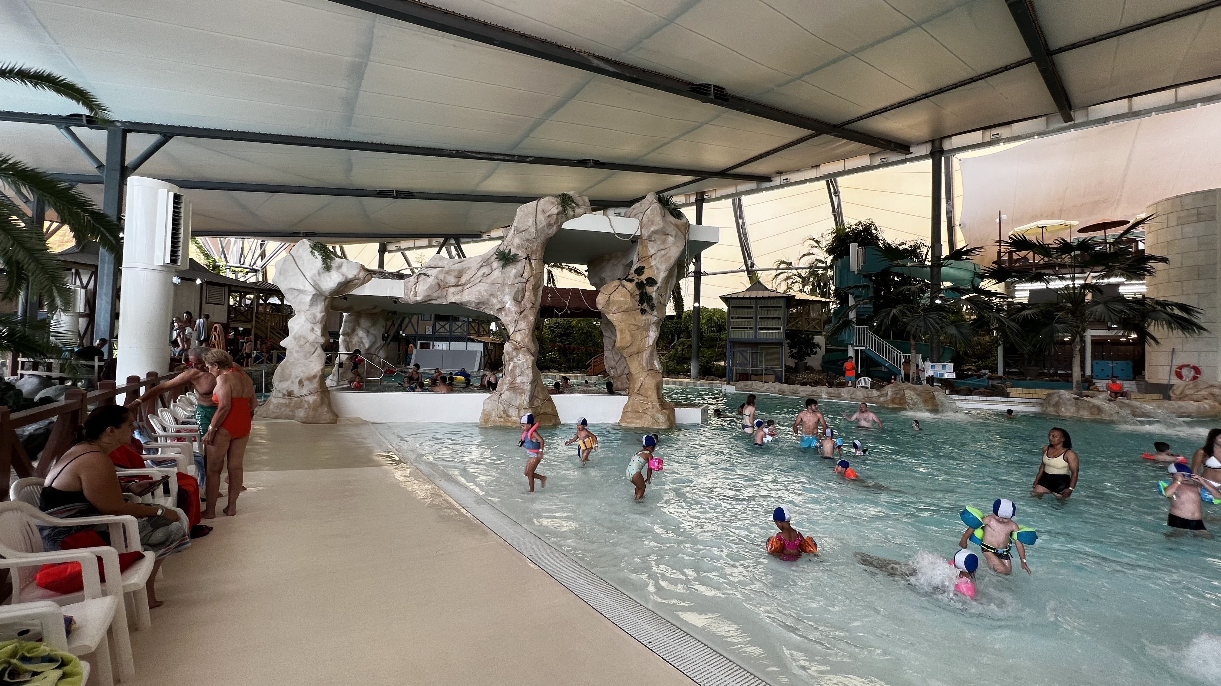 Nous y sommes allés en Juillet lors d'une journée pluvieuse, j'ai failli ne pas réussir à rentrer dans l'eau tellement je l'ai trouvé froide (frileuse), le jacuzzi lui était top mais blindé de monde. Nous avons fait 1h d'attente au snack mais les pauvres n'étaient que 2 et débordés... Par contre la piscine est très bien surveillé et les vagues ont plus à tout le monde (nous étions 12) Ma fille elle a adoré et vous met 5 ⭐ !!!