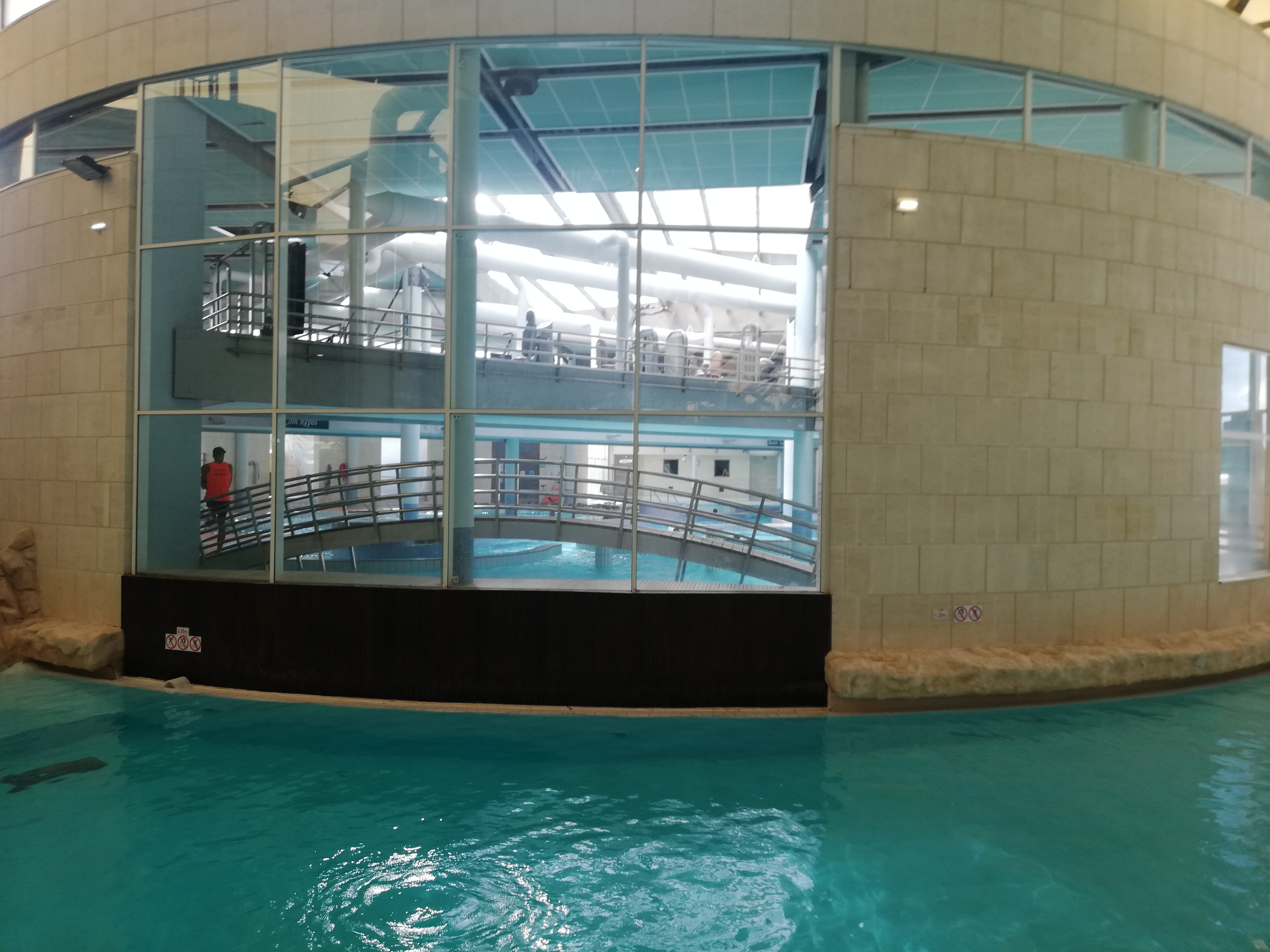 Nous avons passé un agréable moment. Ce n'est pas très grand mais le prix n'est pas très élevé non plus. C'est bien rentabiliser à la journée. Nous avons eu la chance qu'il y ait peu de monde. Nous avons bien profité. Pour l'eau j'ai trouvé la température correcte. Le restaurant offrait peu de choix sans doute parce que l'on est pas en saison mais nous avons trouvé un très bon accueil. Les plats étaient très bon. Le tout était propre. Le personnel est réactif. J'ai perdu ma clé de vestiaire et elle a été ramené au vestiaire qui est surveillé. Petit bémol : les vitres côté bassin a poissons ont du calcaire et on ne voit pas bien les poissons. Pensez à leur donner un petit coup de propre.