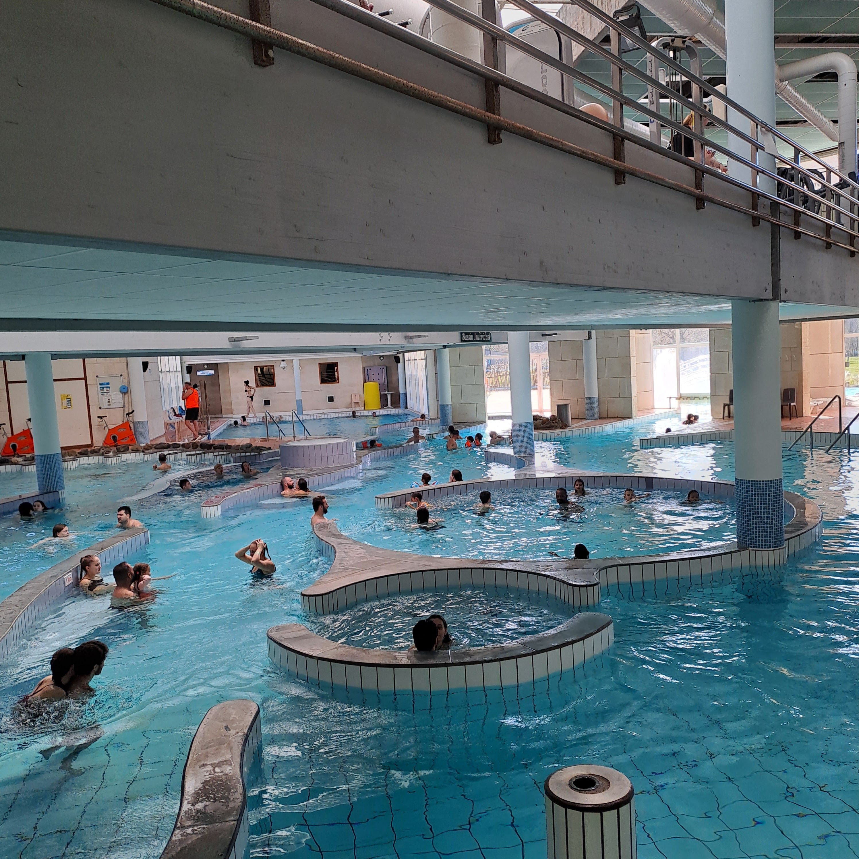 Un endroit très agréable et paisible... Un endroit de calme et détente avec différents espaces d'eau. Du jacuzzi, hammam, sauna, bains romains, bains chauds et eau froide à 17 degrés glagla... Fraîche mais qui fait un bien fou à tous les niveaux. Corps et esprit relaxés vous pouvez également nager au large dans de grandes piscines... De grandes surfaces et très propre nettoyage tout le temps par les employés. Je recommande vivement avec vos enfants, petits et grands.