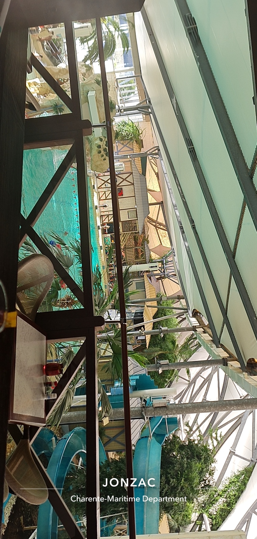 Une vue du complexe aquatique des Antilles de Jonzac avec de la hauteur il est possible de voir l’ampleur de ce domaine. Un site agréable été comme hivers.