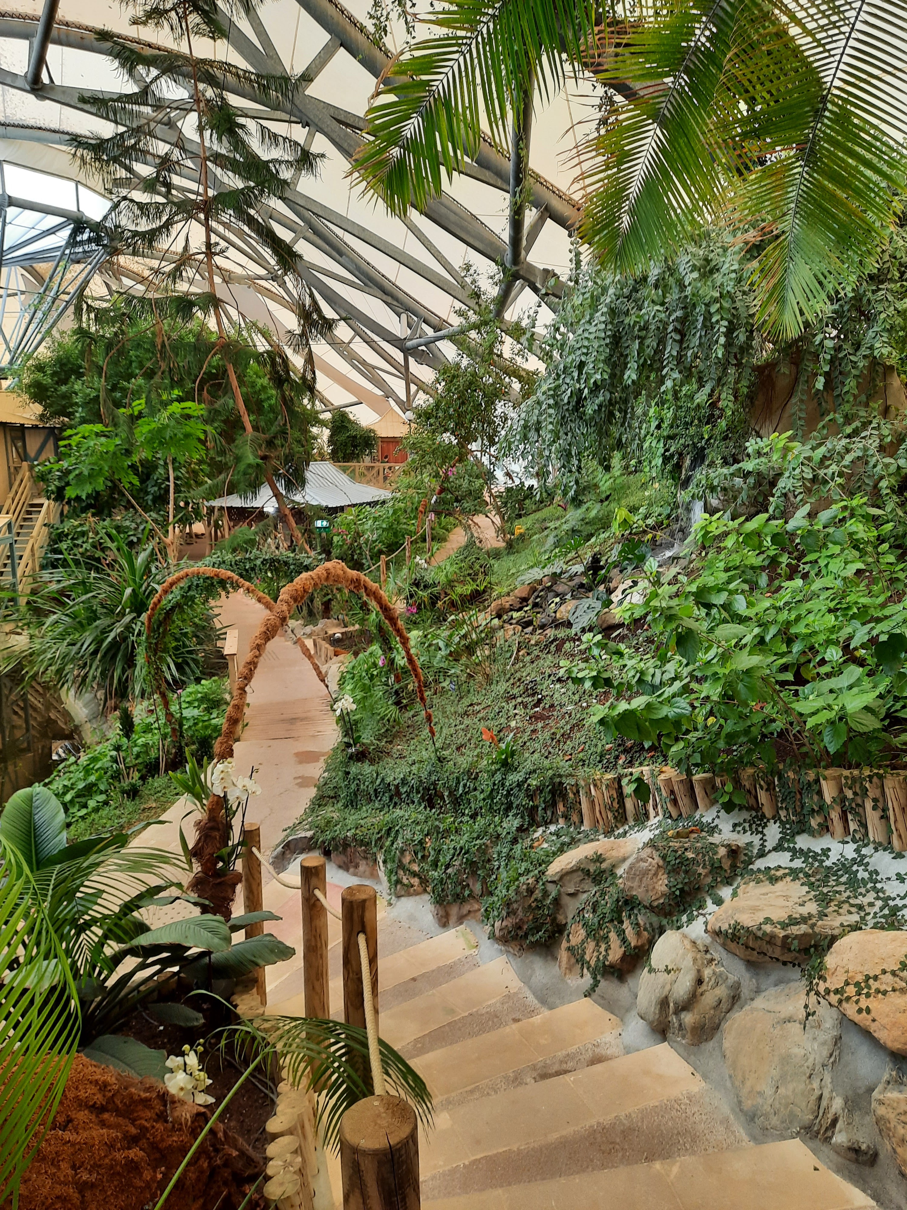 Nous avons passé une super journée en famille. L eau est bien chaude 30°. Le restaurant est sympa et les plats servis sont copieux. Le jardin botanique a l interieur est très jolis et bien entretenues.