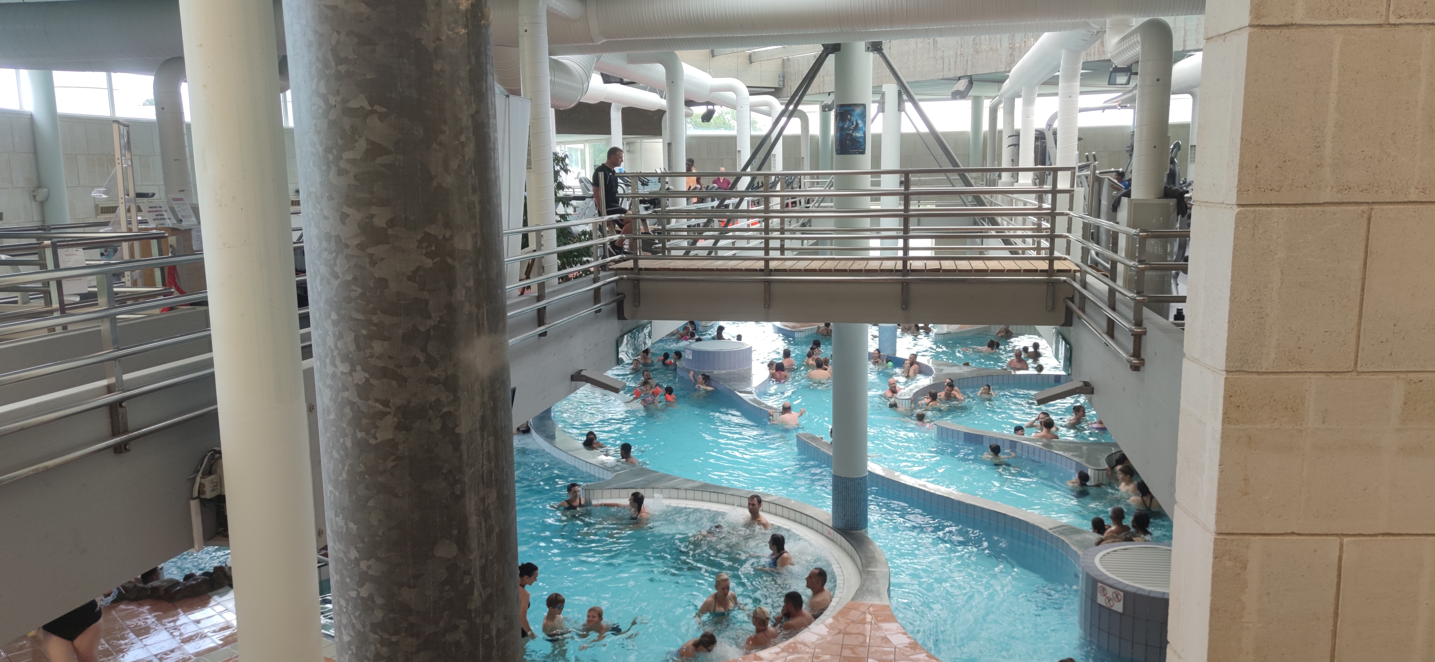 Centre aquatique atypique, agréable et propre. Mais beaucoup beaucoup de monde (période pont). Nous avons pris le pass Liberté, malheureusement l’espace sportif est assez vêtus… les machines ne fonctionnent pas en raison de l’humidité et la rouille.. c’est dommage (espace sportif au dessus des bassins). L’espace détente est chouette, mais surpeuplé, nous étions debout voire entassés dans le sauna et hammam et l’accès au bain romain était infaisable (manque de civisme pour certains baigneurs). La rivière est agréable à faire, l’eau est chaude! Parfait pour les frileux et les enfants en bas âge. En revanche, L’espace ludique est beaucoup plus frais !! Je déconseille cette offre en cas de forte influence et pour l’espace sportif…