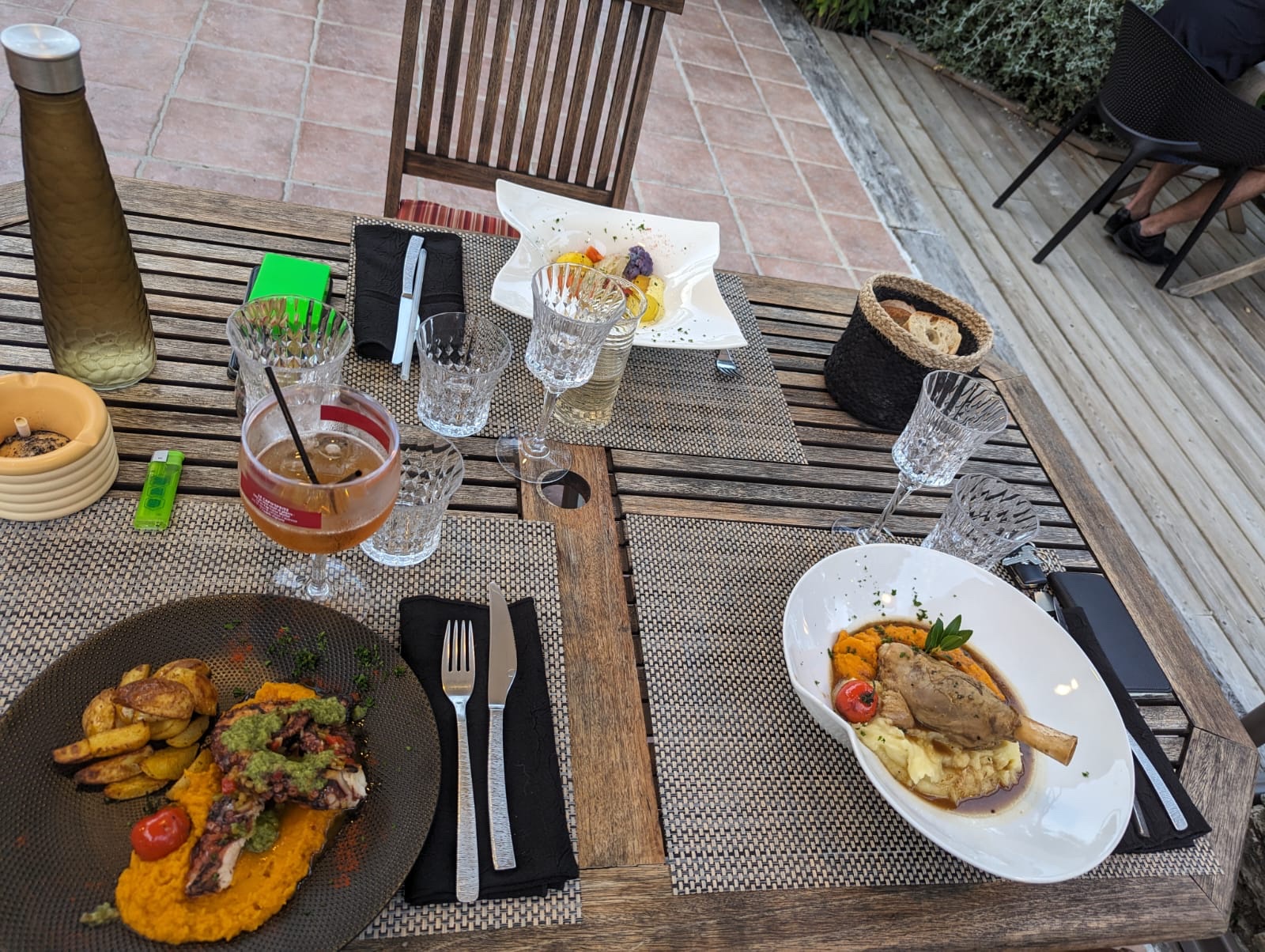 SUBLIME !! Cadre magnifique, la piscine les arbres la déco ! Et les mets sont frais, succulents on s'est régalé !