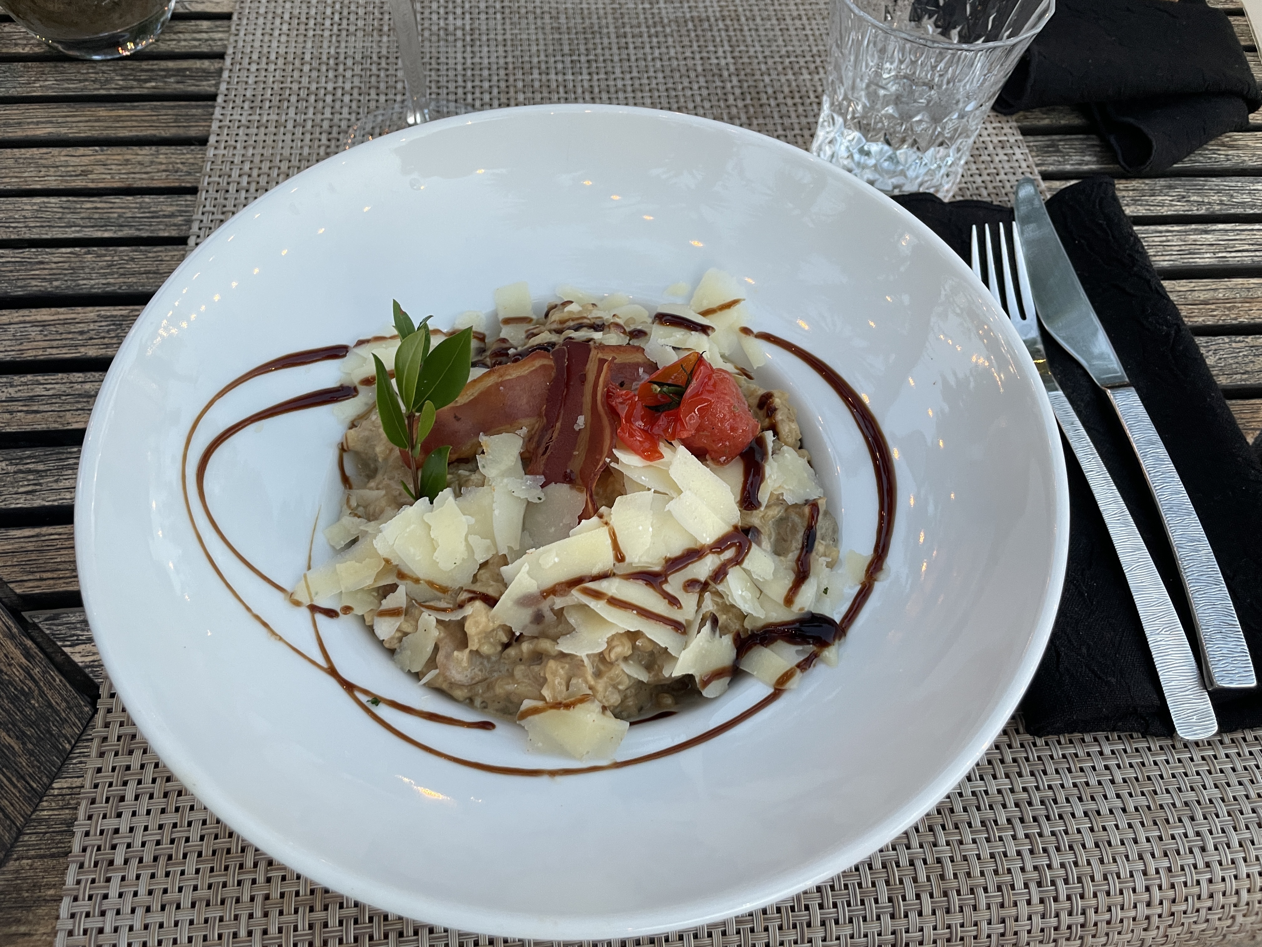 Nous y sommes restés deux fois en 15 jours de vacances. Emplacement magnifique et cuisine tout aussi belle. J'ai mangé une pieuvre qui ressemblait à du beurre, elle était si moelleuse mais ferme à la fois. La viande est également excellente