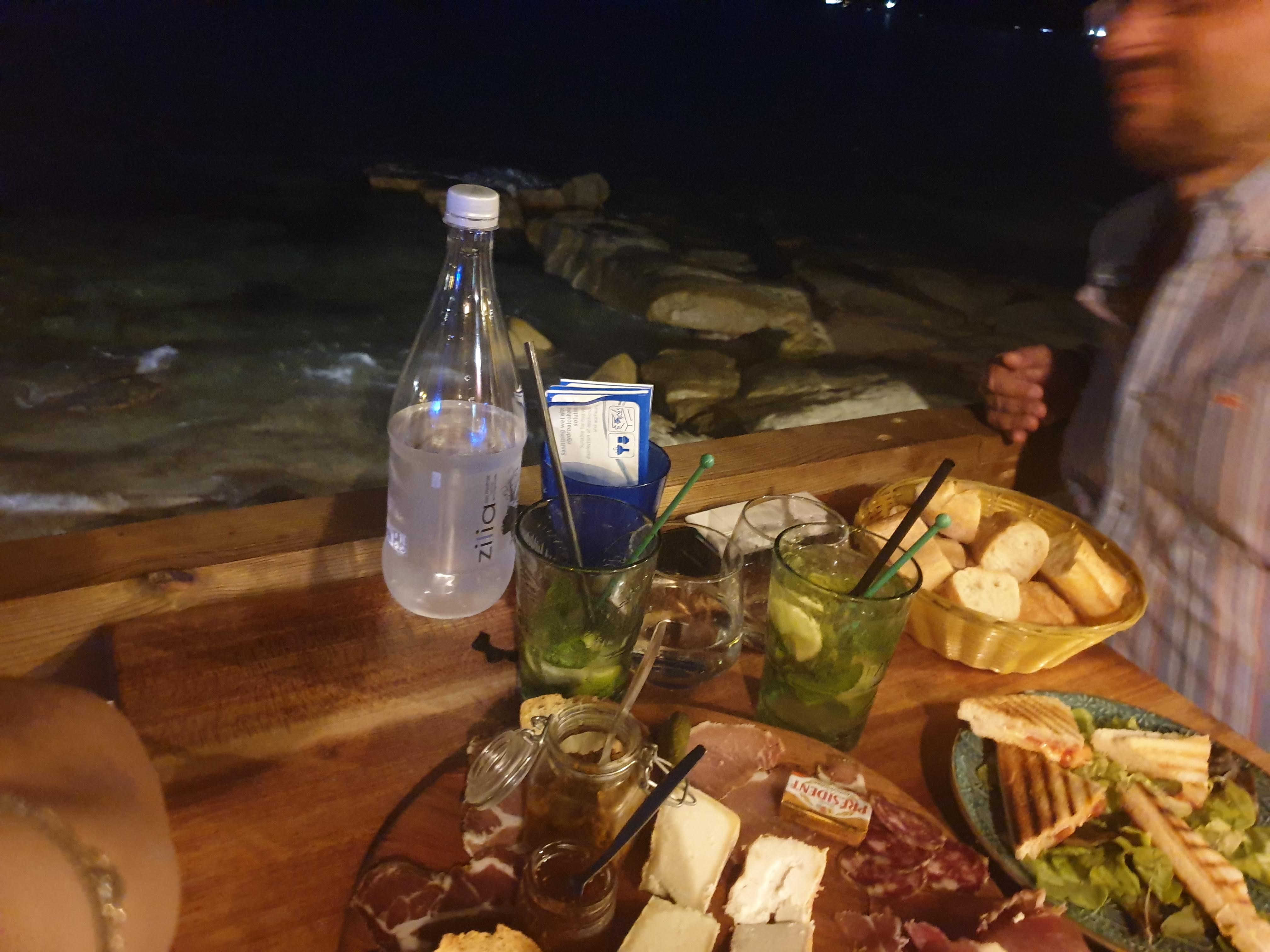 Lieu sympas, belle vue, couché de soleil. L'endroit est chouette. Serveur sympas, cocktail bien également. Mais ca fait pas tout. Le soir c'est tapas. Avec mon conjoint on se réjouissait. Mais très déçu. On trouvais pas que ca fait tapas. Mais bon on est pas expert. Les tapas font fait food. Rien est fait maison. Et je vous déconseil le houmous. C'est une vaste blague. Il est vert, il ont mis du pesto. Mais c'est plus que fade et pas bon. Sans intérêt.