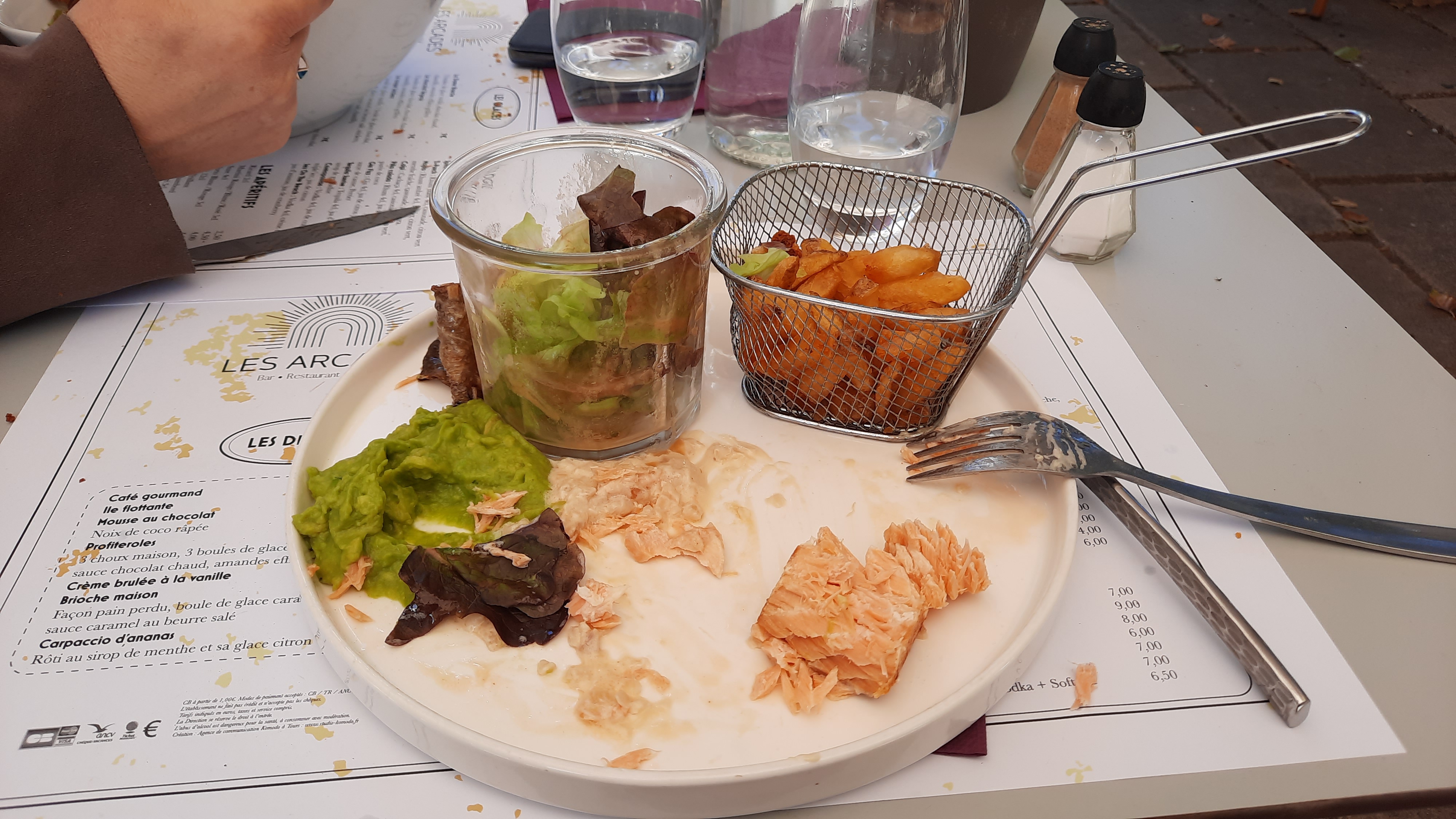 Frites immangeables (huile beaucoup trop vieille)... Pates carbo plus que bof... Nous avons rarement aussi mal mangé !