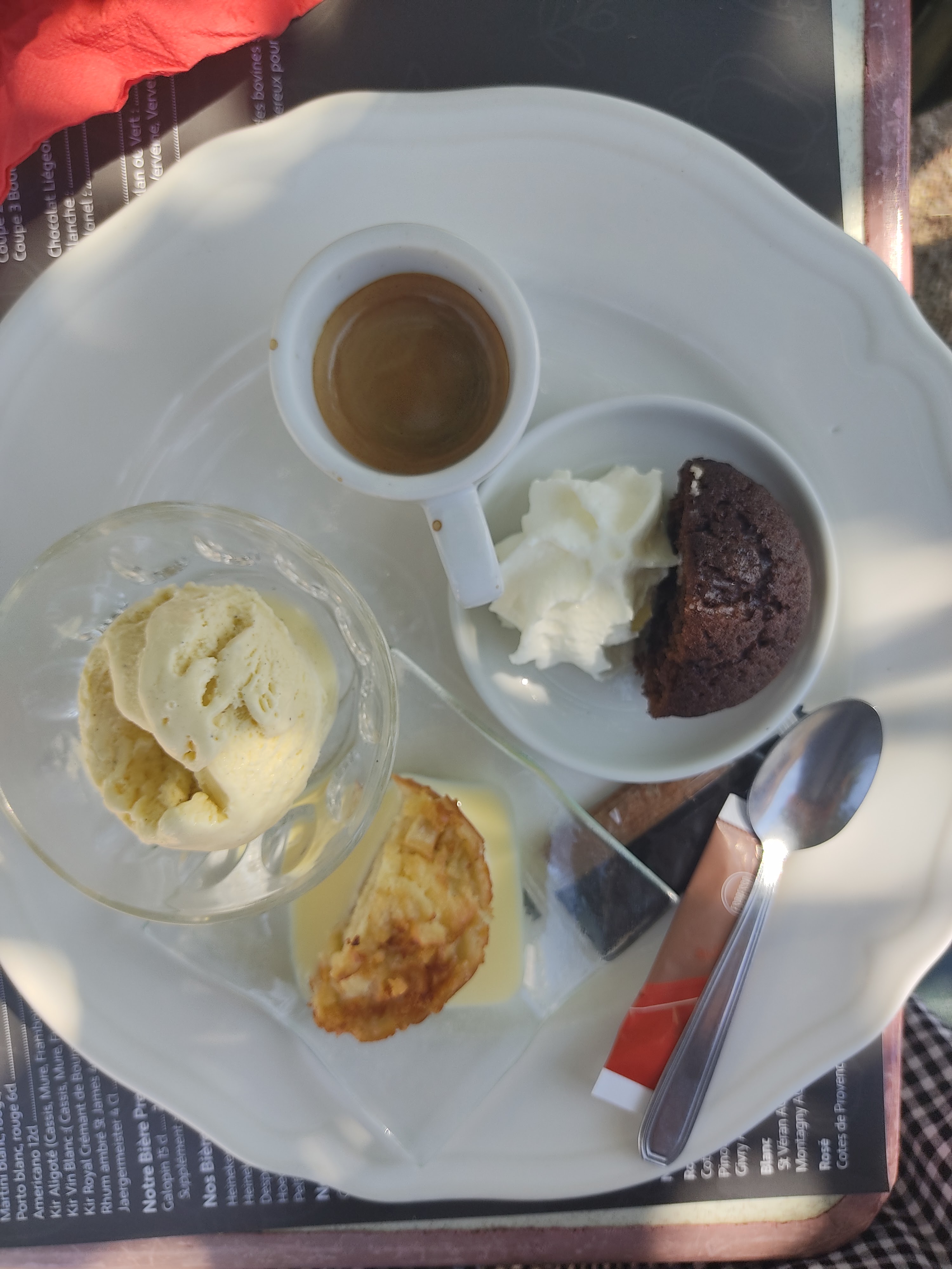 Repas du terroir très bon, dans de belles proportions. Terrasse très agréable et personnel aux petits soins. Je recommande vraiment ce lieu où l’on a divinement mangé avec un très bon rapport qualité- prix.