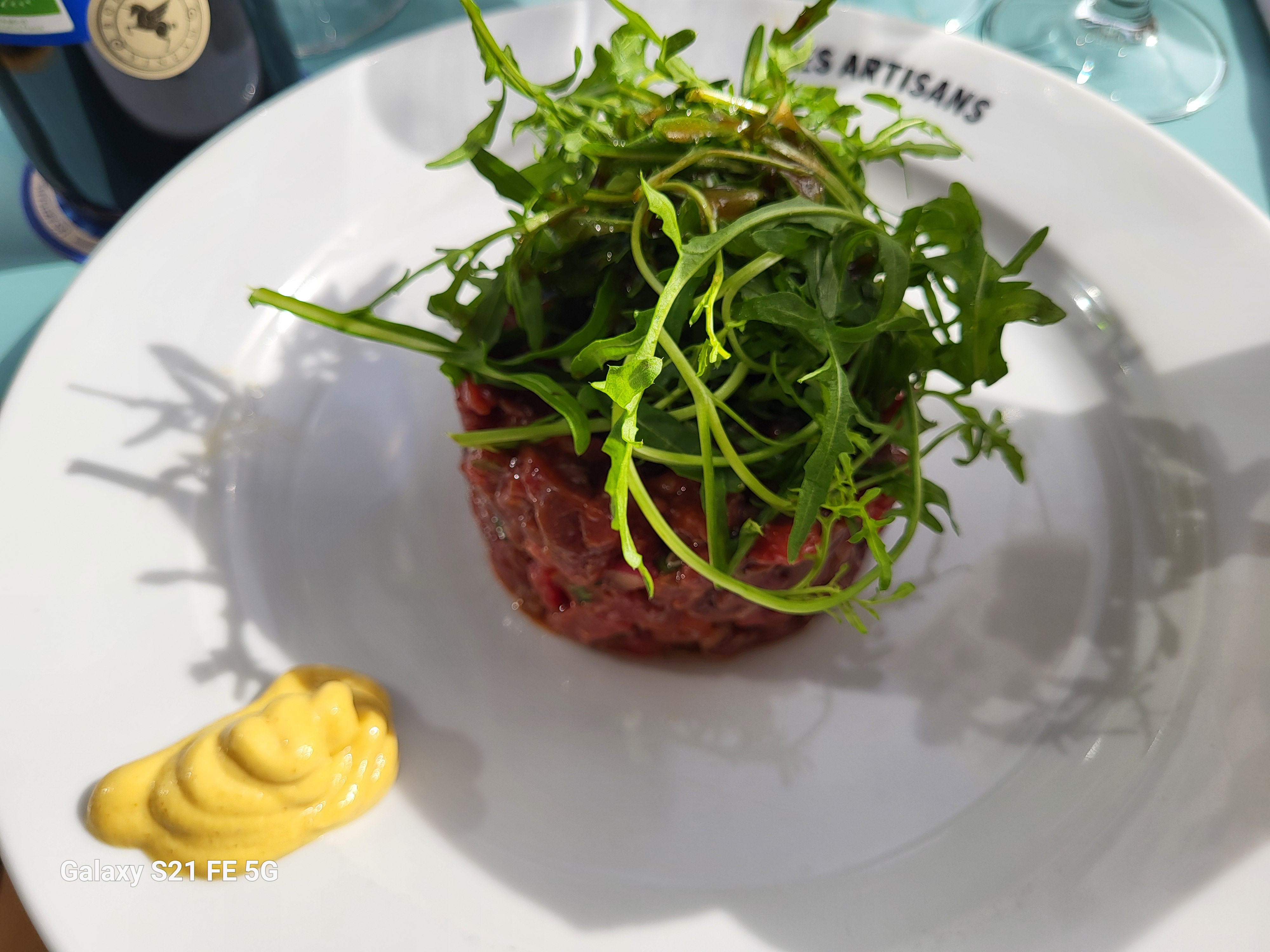 On nous a laissé attendre nos ami qui était en retard, pas de pression pour commander. Tartare de bœuf au couteau un peu trop épicé pour moi mais très apprécié par deux autres convives. Possibilité de recharger son téléphone par une prise juste derrière nous, très pratique.