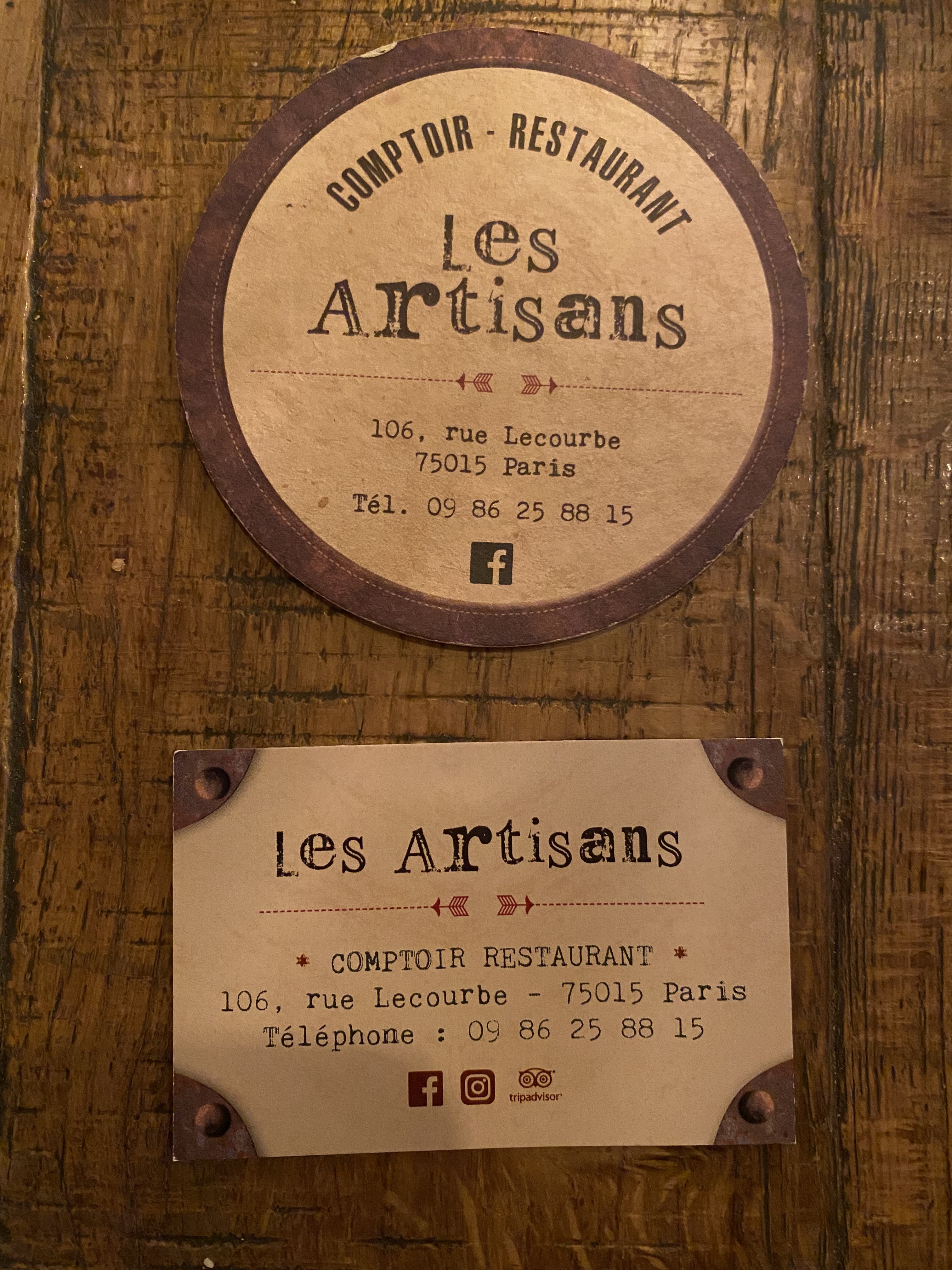 Petit restaurant dans le 15eme arrondissement, les artisans est une valeur sûre ! Les entrées, les plats et desserts sont de qualité et le service est impeccable. Mention spéciale au coquillette à la truffe et au pain perdu. Une très bonne trouvaille qui est rituel ! Allez-y les yeux fermés !