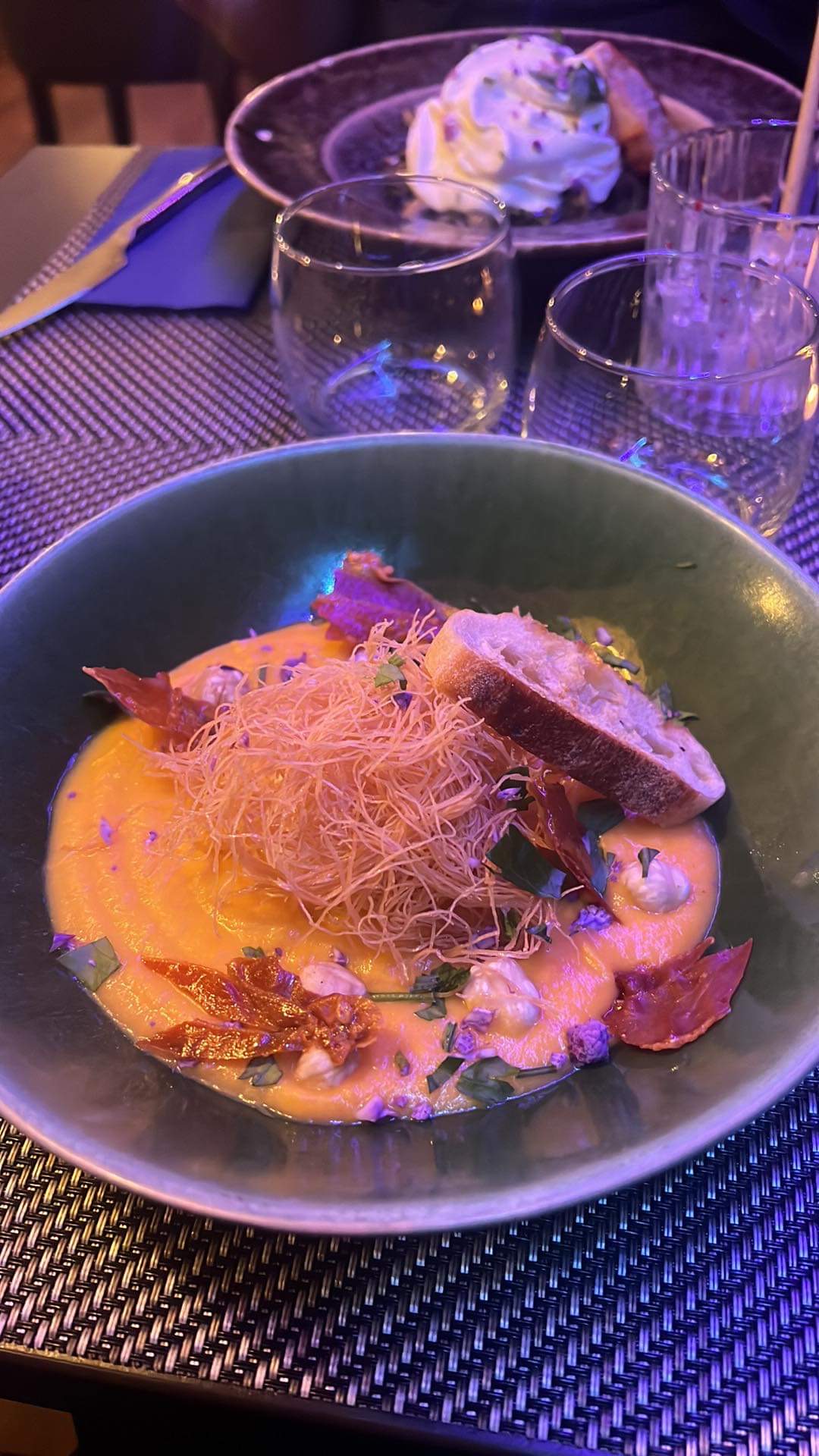 Excellent accueil, tout était très bon et une mention spéciale pour le cocktail sans alcool : le Baklava à base de sirop de pistache, citron pressé et jus d’ananas et petits morceaux de pistache sur la mousse au-dessus ! Les ravioles à la truffe noire avaient l’air succulentes dans l’assiette de ma voisine ! Un vrai régal ! Nous reviendrons à coup sûr !