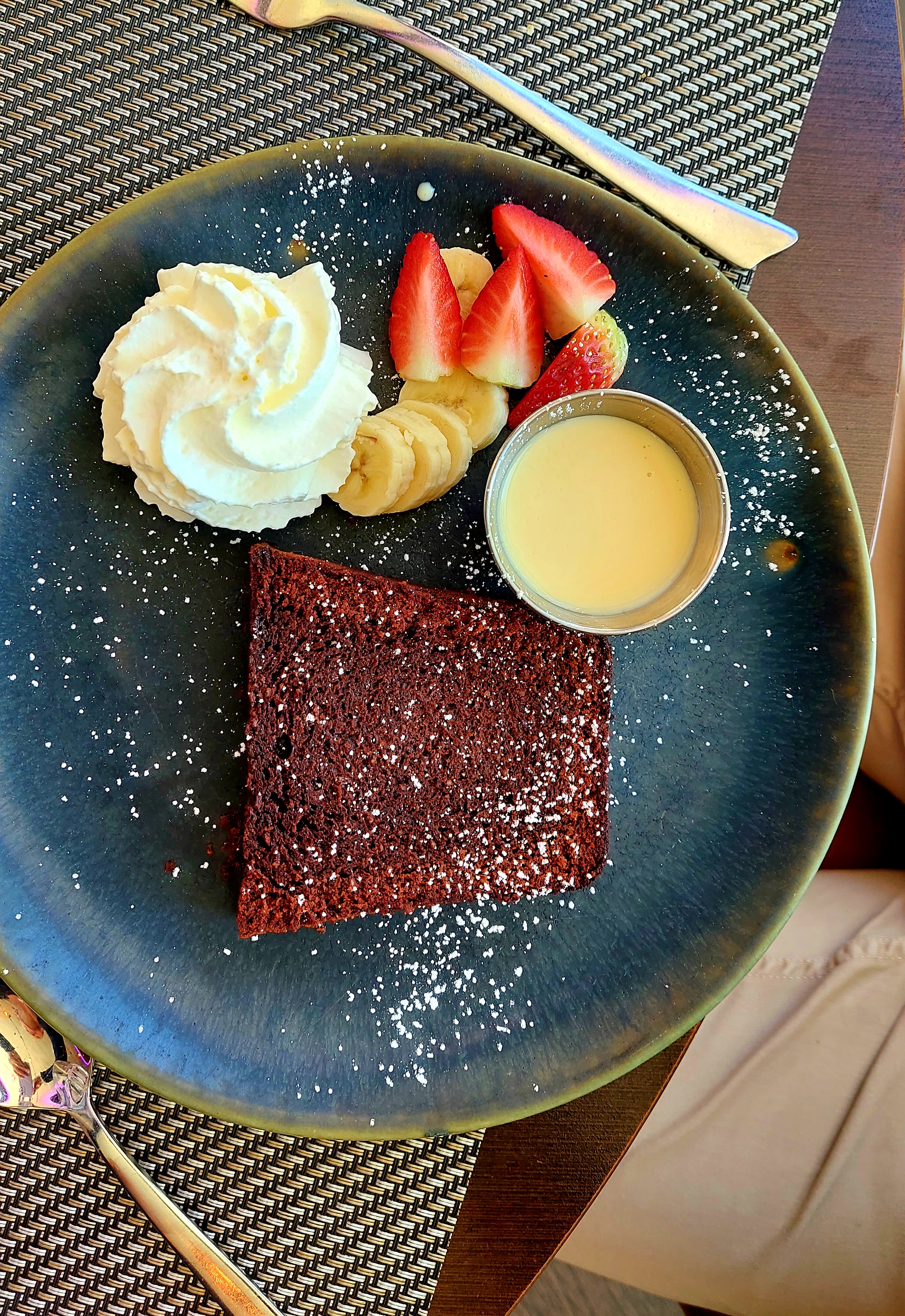 Je vais commencer par le service, bien que le temps d'attente était légèrement long, les serveurs et la serveuse était d'une extrême gentillesse au point où elle nous as proposé de prendre une photo de moi, mon père et ma grand-mère ! Le serveur aussi très bon, le sourire derrière le masque ii nous as même fait rire un moment donné. Sans oublié ce qui semble être le gérant très dynamique sympa, avenant. Pour ce qui est des plats, aucun d'entre nous n'as pris d'entrées. Cela dit les plats étaient excellents, le cabillaud très bien cuit la présentation du plat très belle. Mon père a pris un magret de canard et comme vous dire, il a adoré et ça arrive assez rarement pour le souligner. Bon maintenant ok peux passer au dessert et là je dois vous dire qu'il y en a un qui est absolument fabuleux et je parle bel et bien de l'assiette de fruit. Pour un prix absolument dérisoire de 11,80€, vous avez le droit à une énorme assiette rempli de fruits en tout genre, pastèque, melon, pomme, ananas, banane et j'en passe ainsi que d'une coupelle de chocolat fondu pas de sauce du vrai chocolat qui a été fondu ET, oui car c'est pas fini, de DEUX BOULES de glaces vanille. Alors là que demander de plus le paradis vous est offert. En conclusion une très belle surprise, une bonne adresse que je conseille à tout le monde sachant que les prix ne sont pas non plus excessifs si vous cherchez à vous faire plaisir et surtout si vous aimez les fruits ! Alors je n'aurais qu'un seul conseil à vous donner foncez !