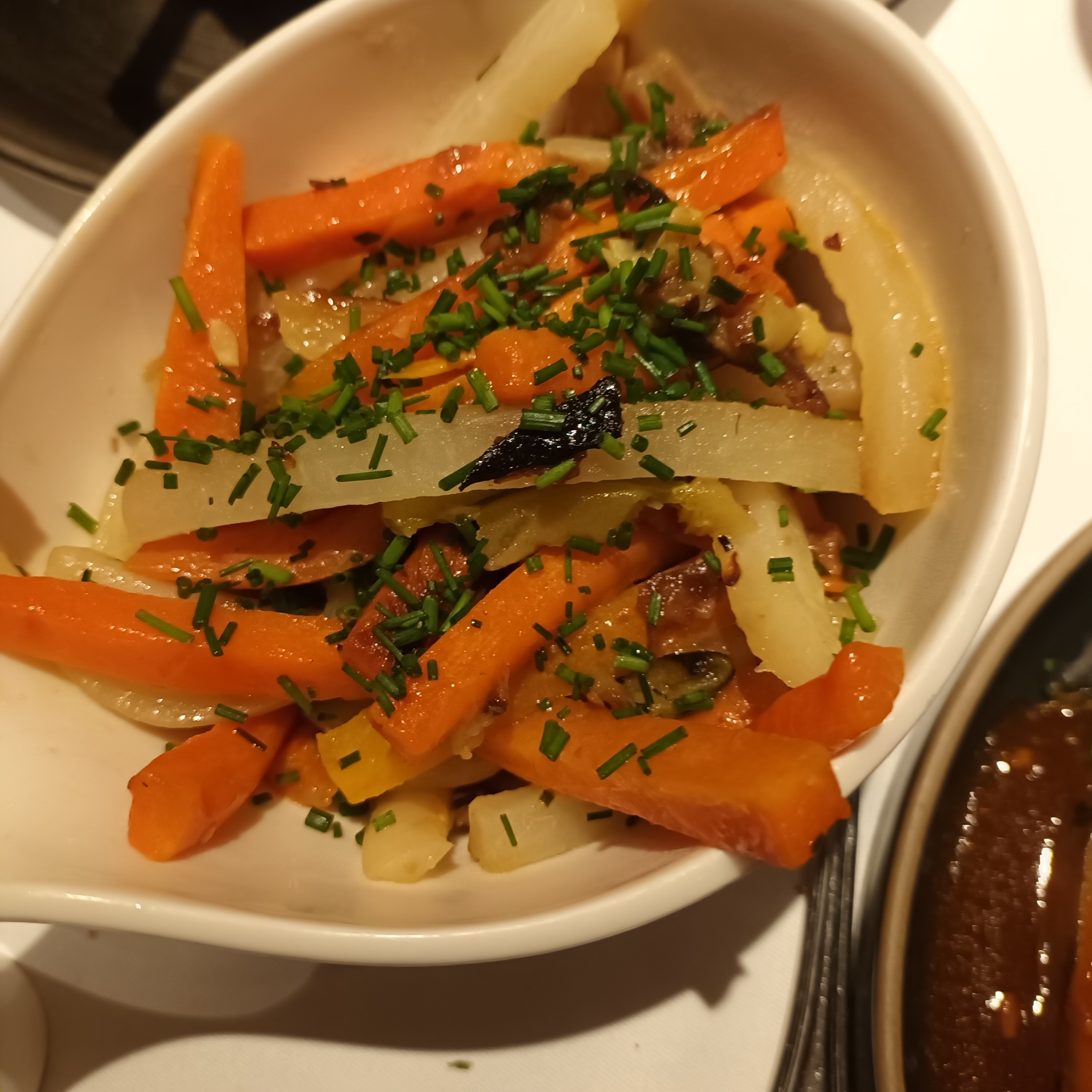 Plats bons et copieux malheureusement le service n’est pas à la hauteur de ce qu’on pourrait attendre pour un menu unique de st Valentin ( trop d’attente si il manque du personnel prendre moins de couverts)