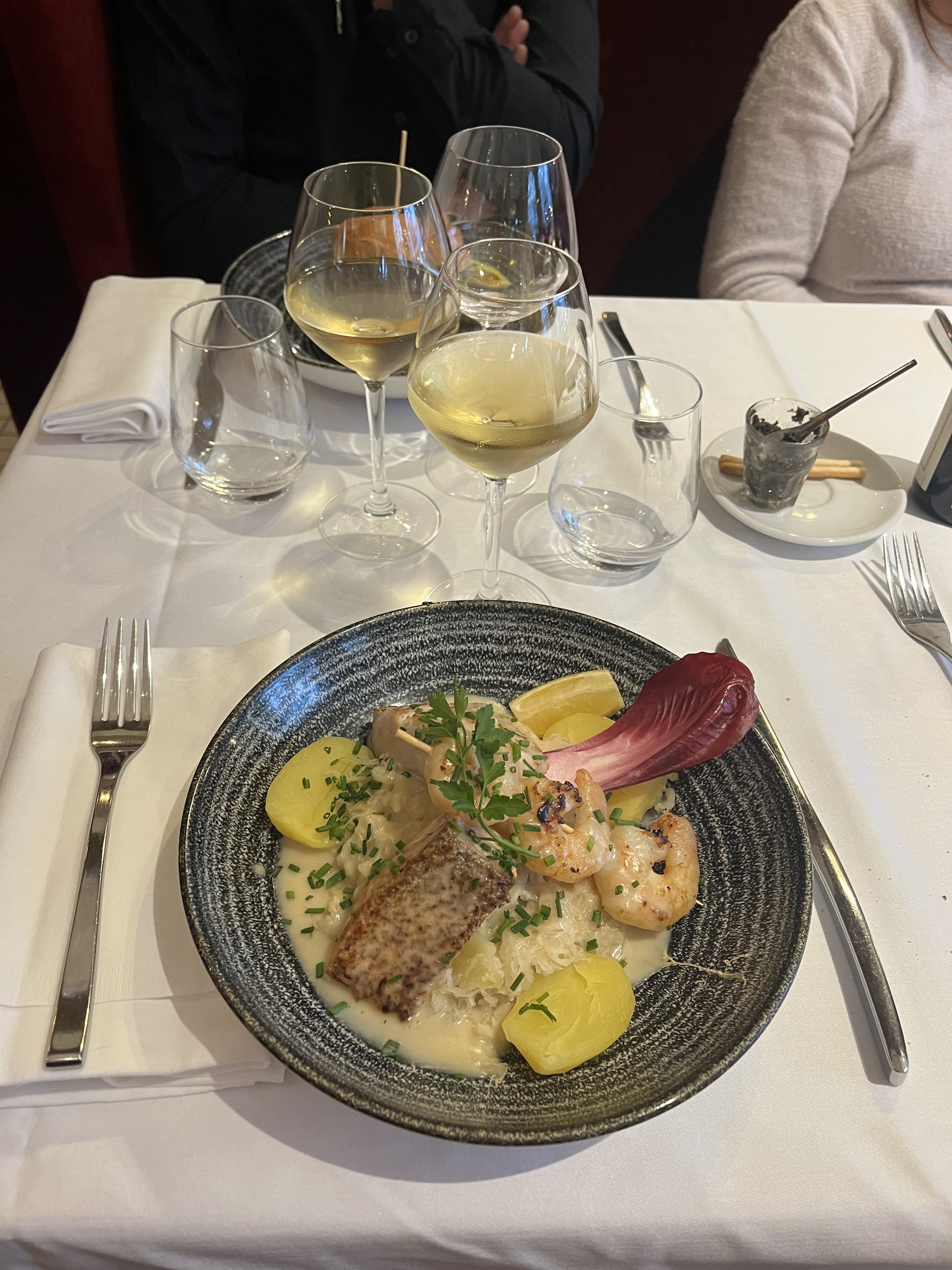 Ambiance cossue et service impeccable ! La choucroute de la mer est excellente et le dos de cabillaud un régal. Le personnel est très sympathique et aux petits soins. Je vais en faire ma cantine à coup sûr. À faire en couple ou en famille.