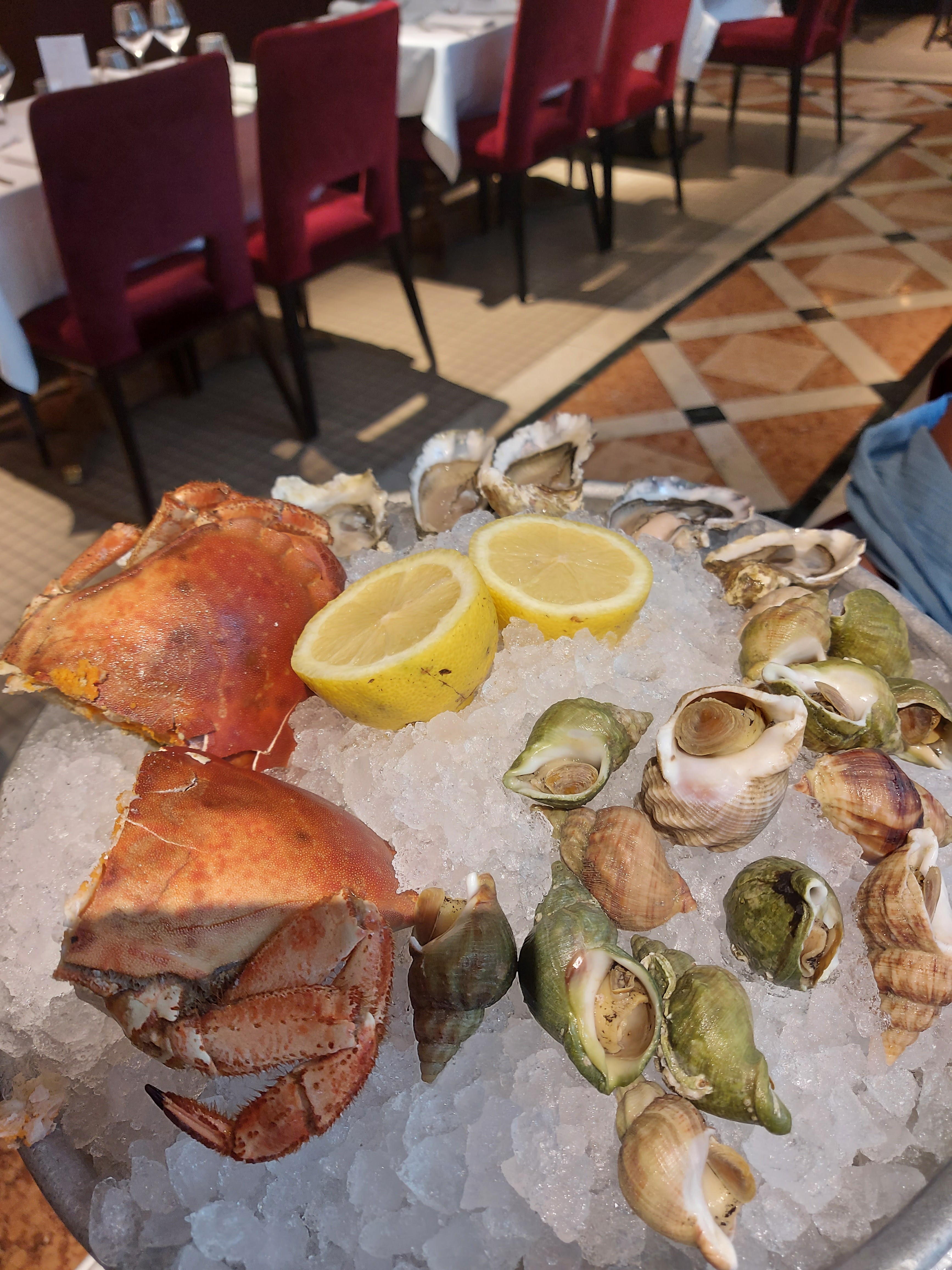 Nous y avons pris un plateau de fruits de mer prestige. Tous les produits nous ont semblé frais et c'était vraiment très bon. Brasserie et service a la Française qu'on ne trouve plus que difficilement , comme ce flambée de la crêpe sucette devant le client c'est vraiment top. Enfin le cadre est vraiment sympa d'une vieille brasserie a l'ancienne jusqu'a la tenue des serveurs impeccable. On recommande et nous y retournerons surement.