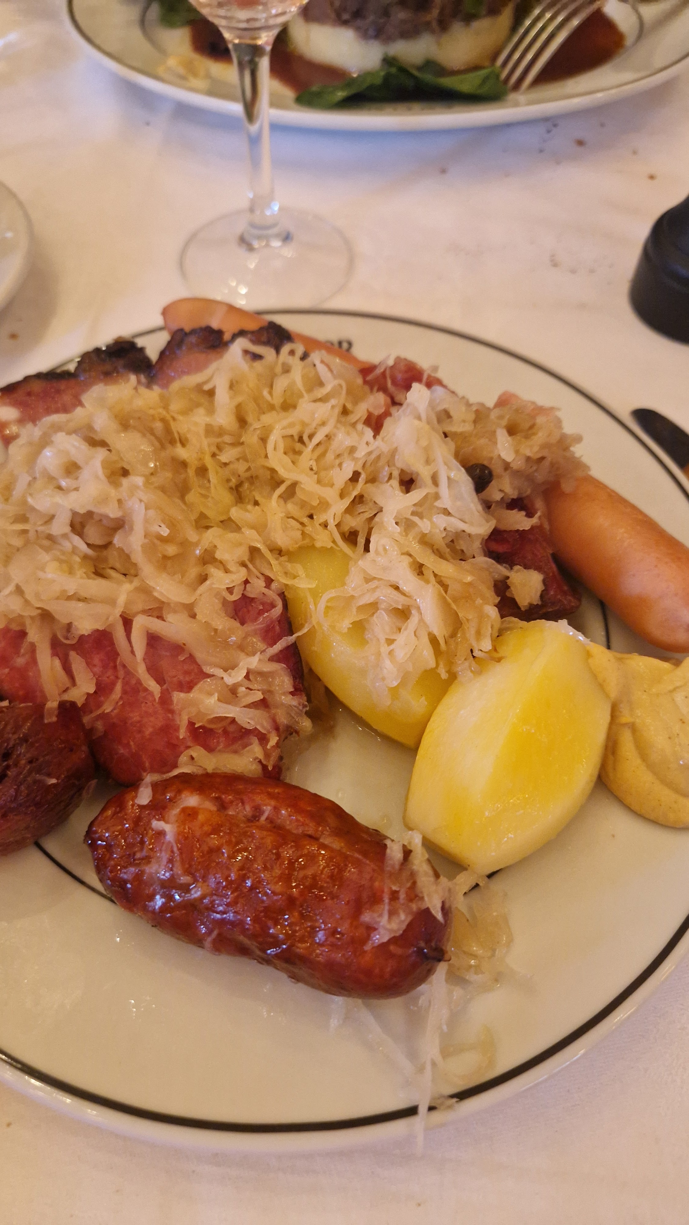 Choucroute divinement bonne Repas de haut vol avec des produits de qualité . Très bon service et cadre déco qui nous transporte. Je recommande vivement.