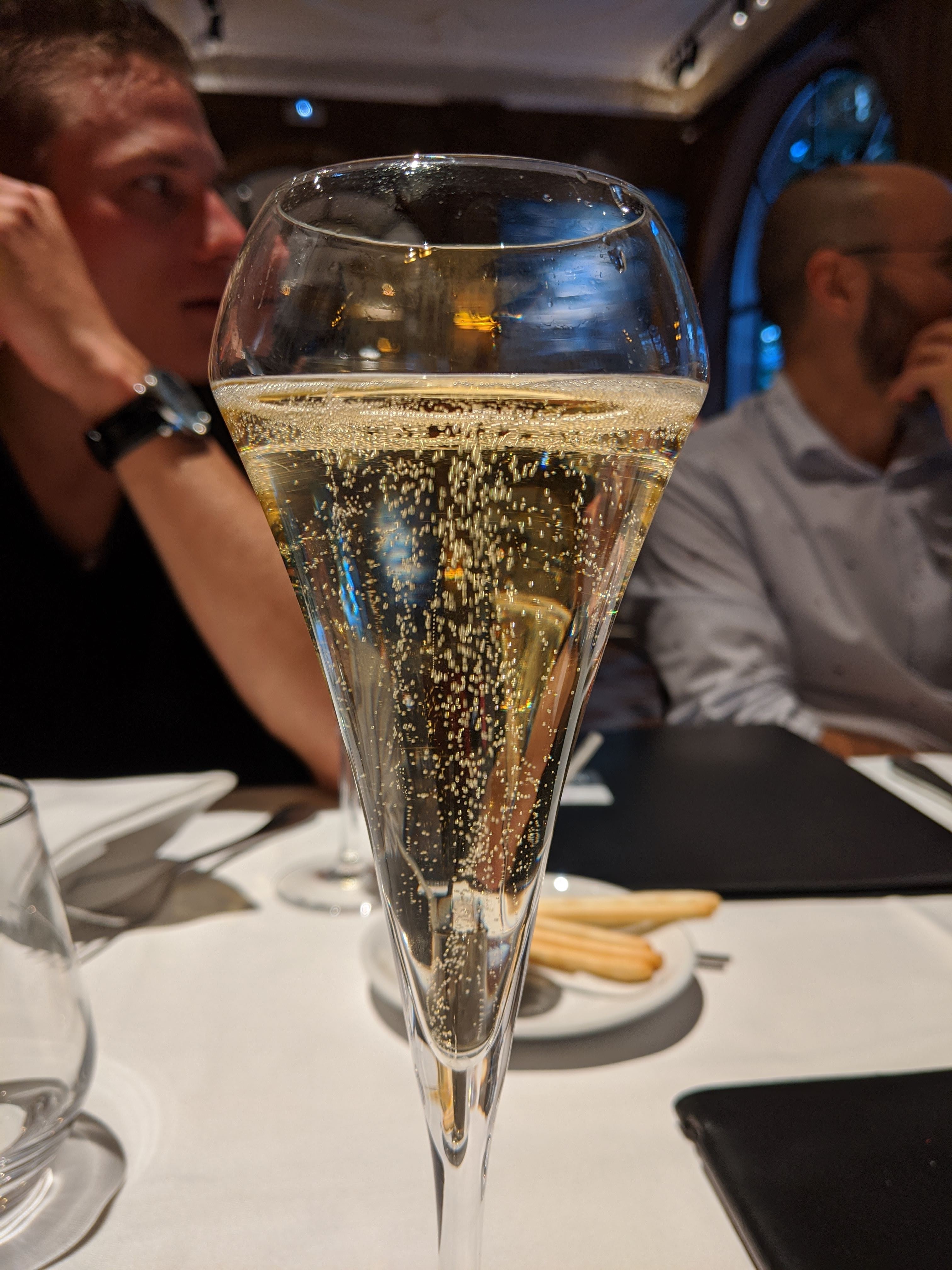 Accueil compliqué, nous avions réservé une table et le personnel à peine francophone a eu un mal fou à retrouver notre réservation, nous avons du leur indiquer notre nom sur leur liste. Ensuite le service a été brouillon, nous nous sommes retrouvés avec 2 fois les aperitifs. Enfin le foie gras était insipide, et l'esturgeon trop cuit. Le meilleur a été le lendemain, le poisson ne devait pas être tout à fait frais...