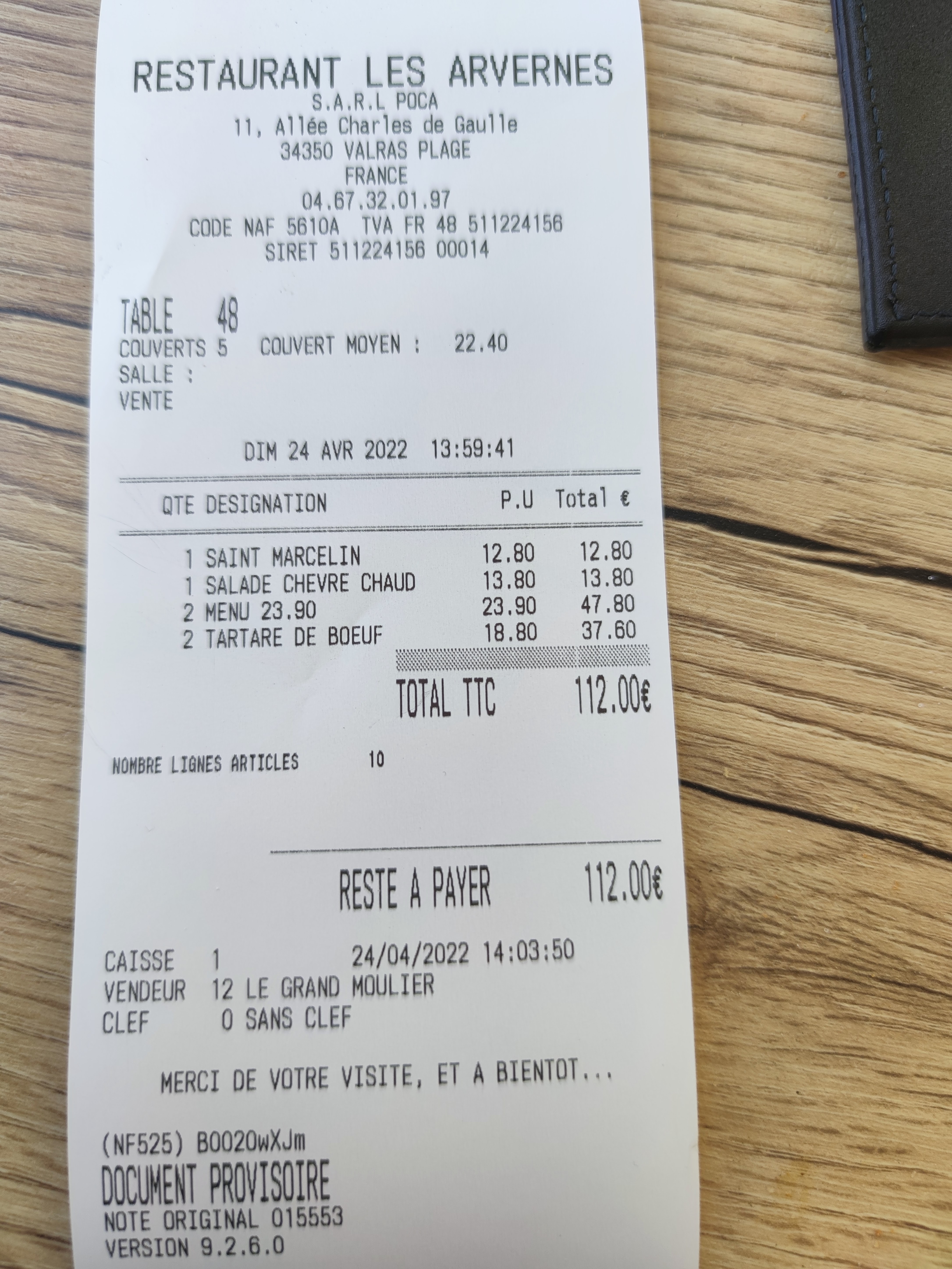 Sorry... no photo , I was so shocked I didn't think about taking one. I paid nearly 29€ for the house speciality L'assiette des Arvernes. It comprised of a fish risotto (stone cold and quite sweet like rice pudding), 3 pieces of cod (the size of a large bottle top), 3 gambas (these were hot, cooked and ok) and one crustacean which didn't have clews but was supposed to be a langoustine - this was cold and undercooked. By the head, the meat was translucent with a grey tinge. I sent it back. The waiter returned with exactly the same plate of food which had obviously been microwaved. Disgusting!!! I got no discount and a nonchalant 'sorry' when paying. Never going back!! Don't waste your money!!! Désolé... pas de photo, j'étais tellement choqué que je n'ai pas pensé à en prendre une. J'ai payé près de 29€ pour la spécialité de la maison, L'assiette des Arvernes. Elle se composait d'un risotto de poisson (froid comme la pierre et assez sucré comme du riz au lait), de 3 morceaux de cabillaud (de la taille d'un bouchon de bouteille), de 3 gambas (chaudes, cuites et correctes) et d'un crustacé qui n'avait pas d'oreilles mais qui était censé être une langoustine - il était froid et pas assez cuit. A la tête, la chair était translucide avec une teinte grise. Je l'ai renvoyé. Le serveur est revenu avec exactement la même assiette de nourriture qui avait manifestement été mise au micro-ondes. Dégoûtant !!! Je n'ai obtenu aucune réduction et un désolé nonchalant au moment de payer. Je n'y retournerai jamais ! Ne gaspillez pas votre argent !!!
