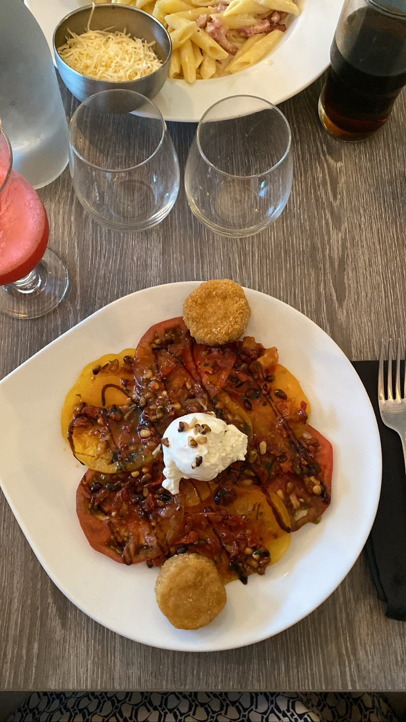 Nous nous sommes régalés pour notre dernière soirée avant le retour dans le Nord. Tartiflette de la mer excellente, on est des connaisseurs 😋 De trés bons desserts pour le menu. Juste les croquettes de poulet et fromage, un peu deçu, une entrée assez fade, je ne m'attendais pas à ça (présenté comme une salade avec des croquettes de poulet et des morceaux de fromage) mais plutôt à de vraies croquettes fromage/poulet. Sinon trés bonne organisation dans le service, trés rapide malgré le monde (1h pour apéro, entrée,plat et desserts).
