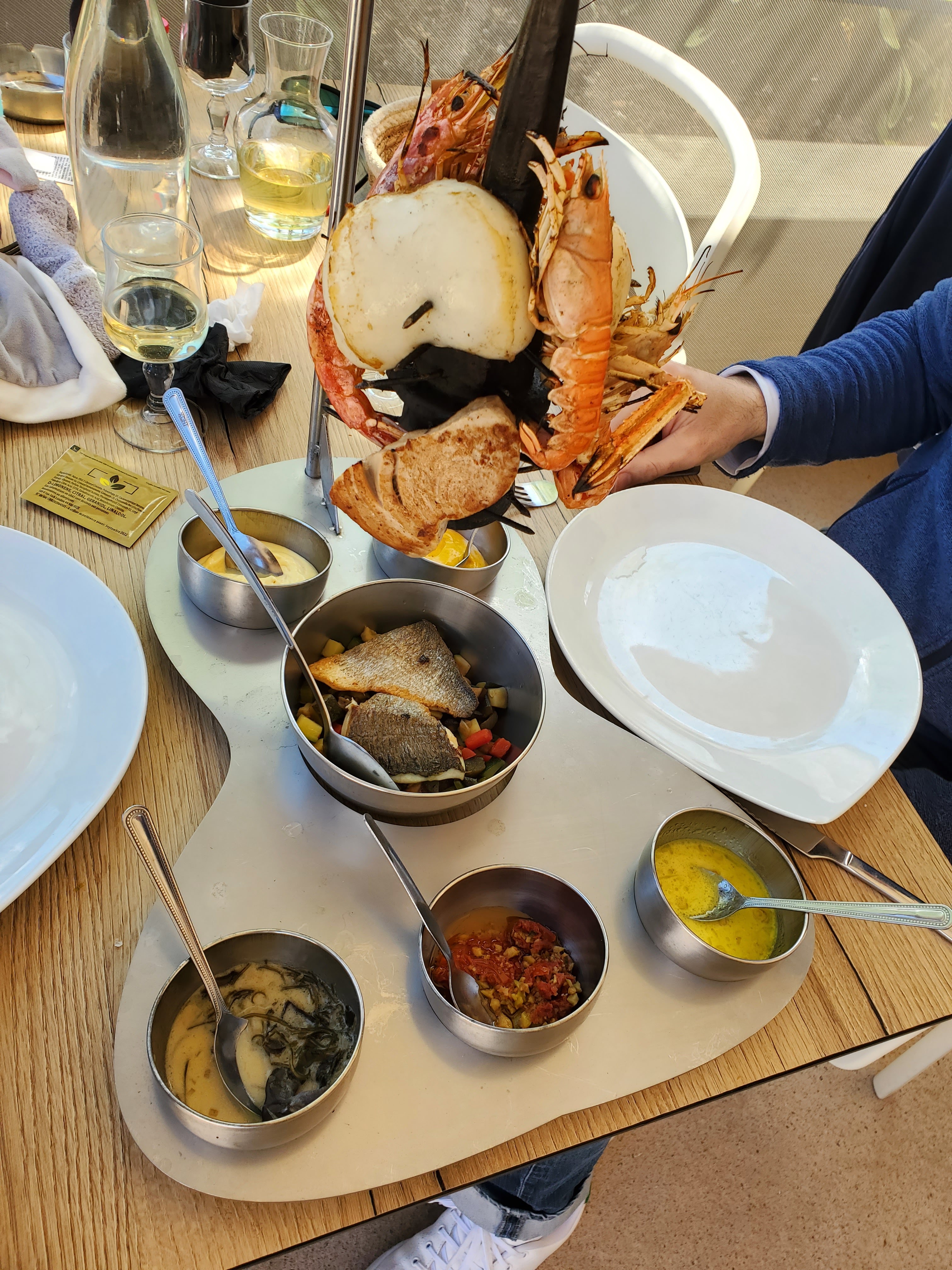 Service rapide. Gros bémol sur la soupe de poisson qui était beaucoup trop diluée dans l'eau. Fade et sans goût. La rouille pas assez forte. Les encornets, moules, duo saumon-lotte, velouté d'avocat et aumônière etaient bons ! Malheureusement, on ne retentera pas l'expérience et on ne recommande pas...