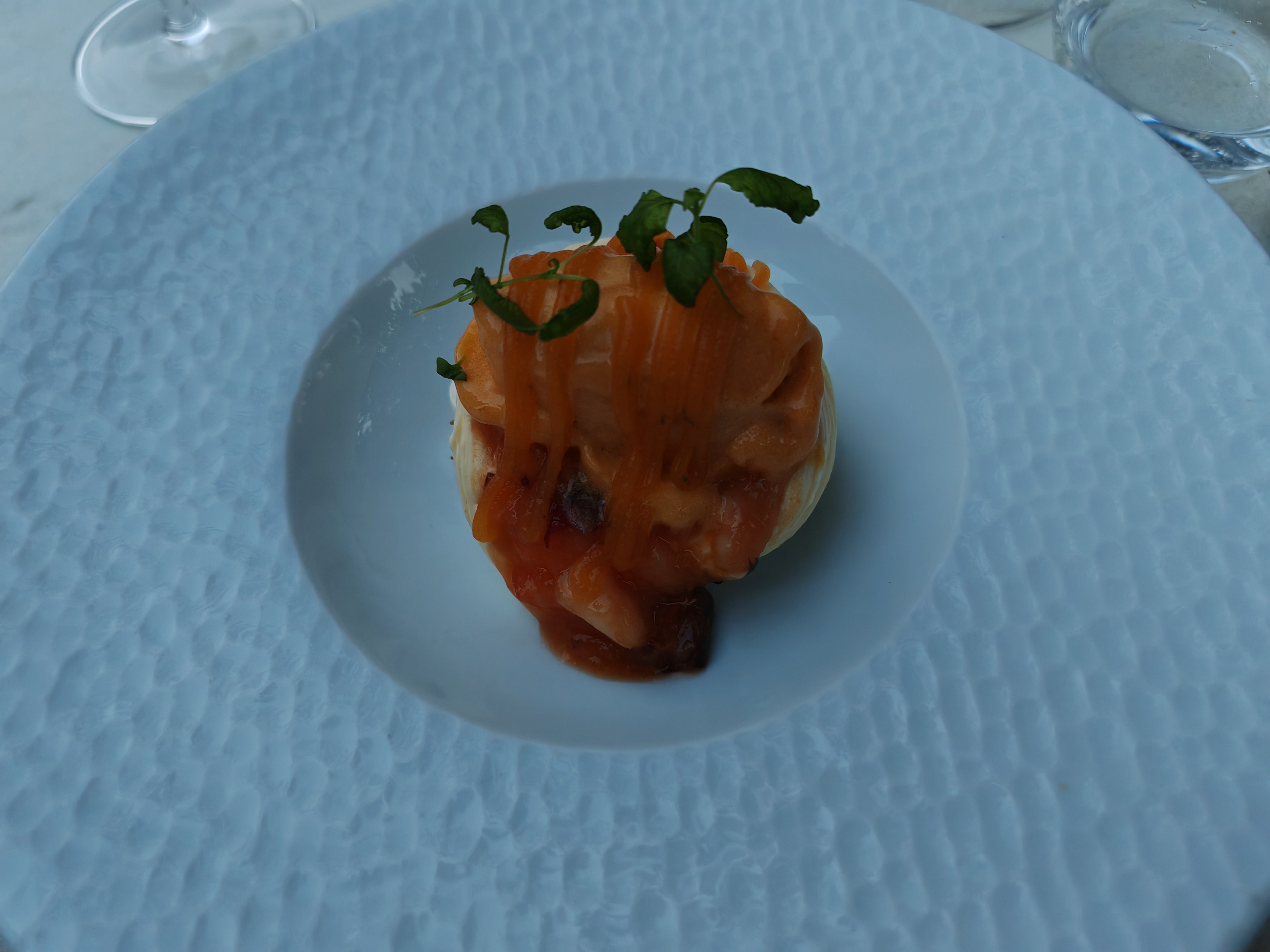 Tout parfait. Raffiné gourmand. Joli restau au cœur d'un joli petit village. Il faisait 37° dans la vallée et tout juste 30° avec un petit vent tout léger. Je recommande à 1000 %