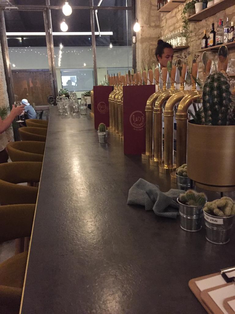 Un lieu avec de très bonnes bières et des vins de bonne facture. On regrette un peu, le manque d'une carte des vins avec des bouteilles d'exception mais le concept instauré par le(s) propriétaire(s) n'est pas ça. Un service très sympathique et accueillant malgré le concept service au bar. Il ne faut surtout pas oublier le cuistot qui réalise de vrais plats gastronomiques auxquels on ne s'attend pas vraiment quand on commande des tapas. Le seul bémol est le bruit. Il est vraiment dommage de n'avoir pas prévu des éléments phoniques pour réduire la nuisance sonore.