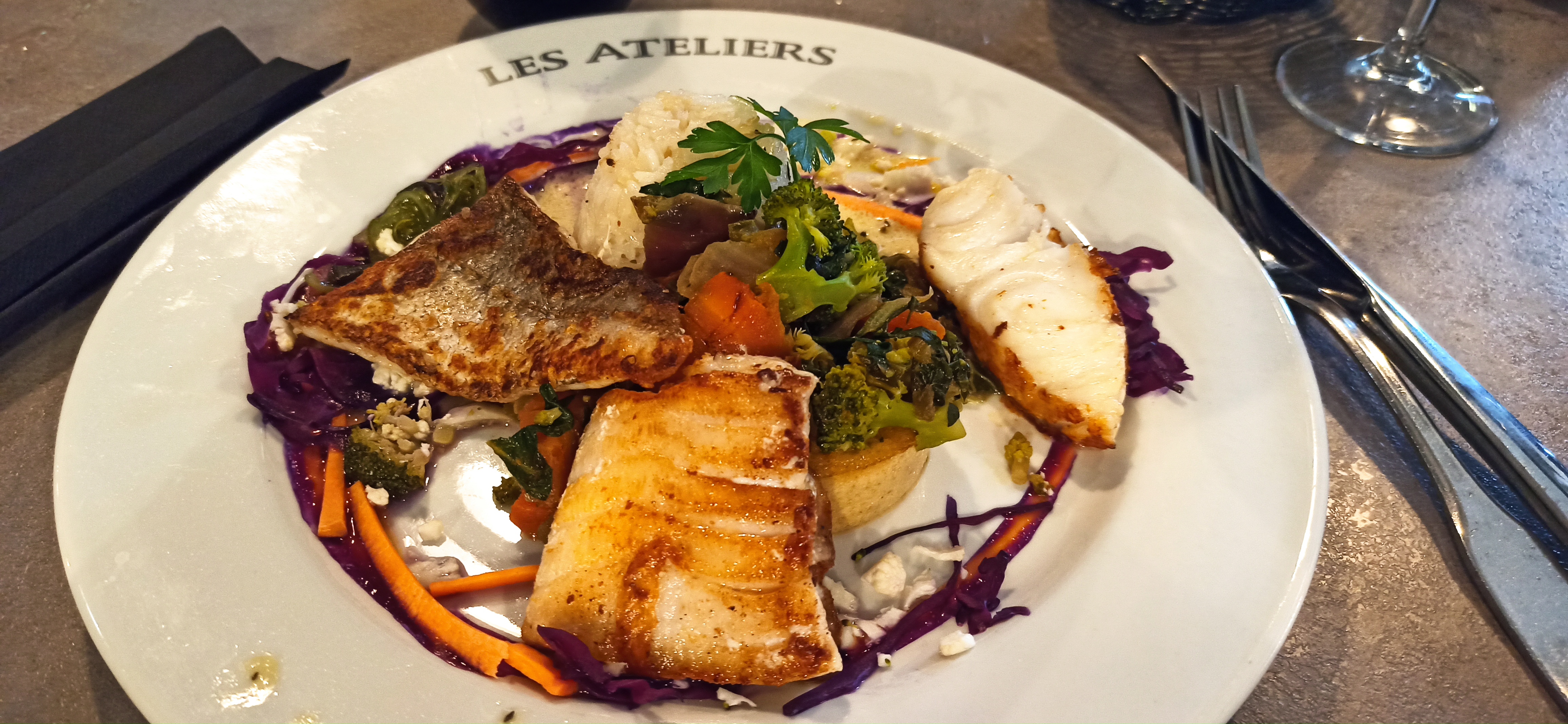 Très bruyant et l eclairage aggressif... mais le poisson est particulièrement bien cuit et de bonne qualité