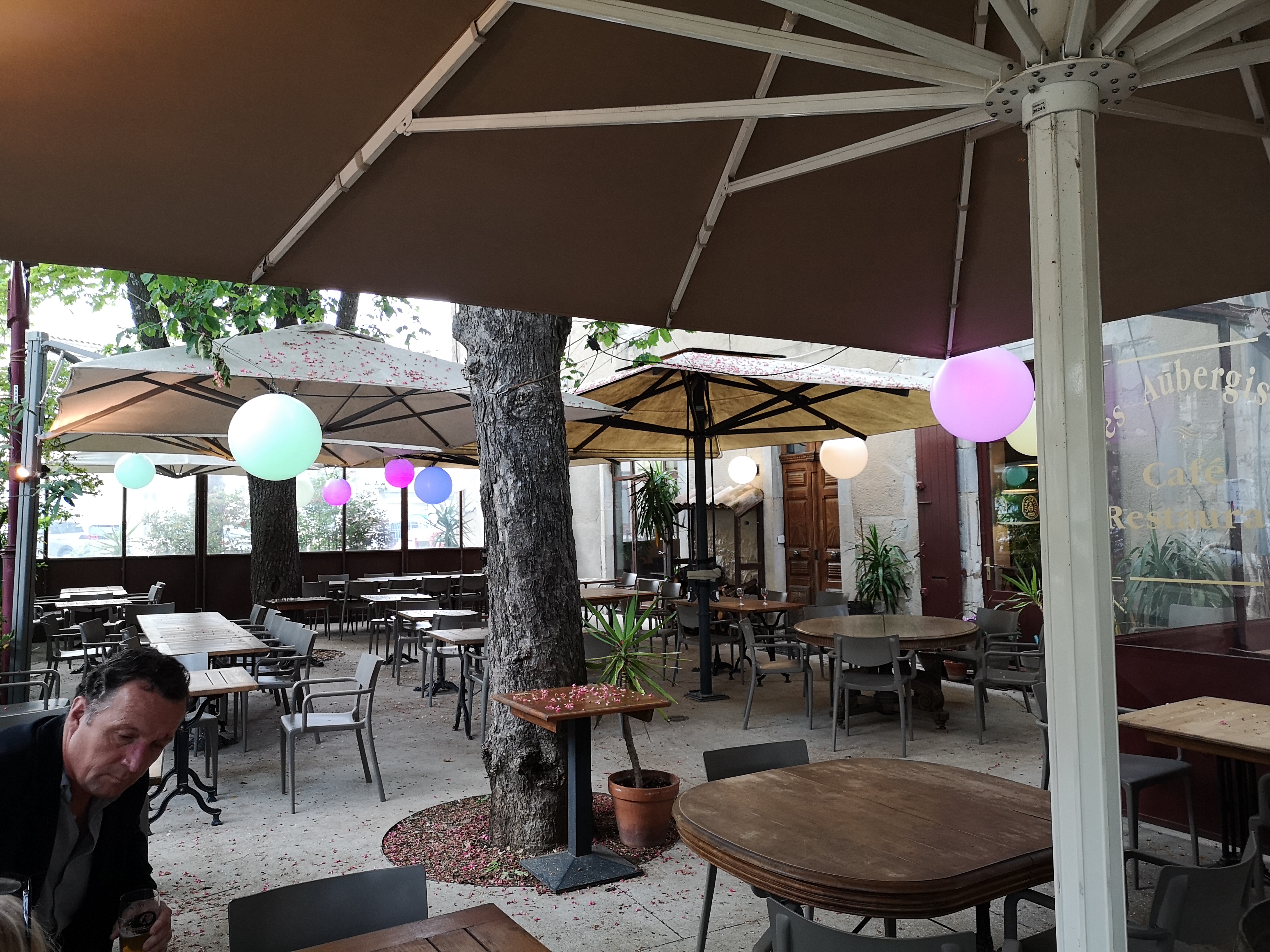 Bonne ambiance + Bonne cuisine sur le pouce + Bonne déco de bric et de brocs sympas + Bon village : expos d'artistes régulièrement + Bonne région : la Drôme Provençale + Bon plan : si Les Aubergistes sont pleins comme un restau parisien du vendredi, on peut se rabattre sur le salon de thé plat du jour L'Atelier ou sur le resto face aux Aubergistes très délicious.