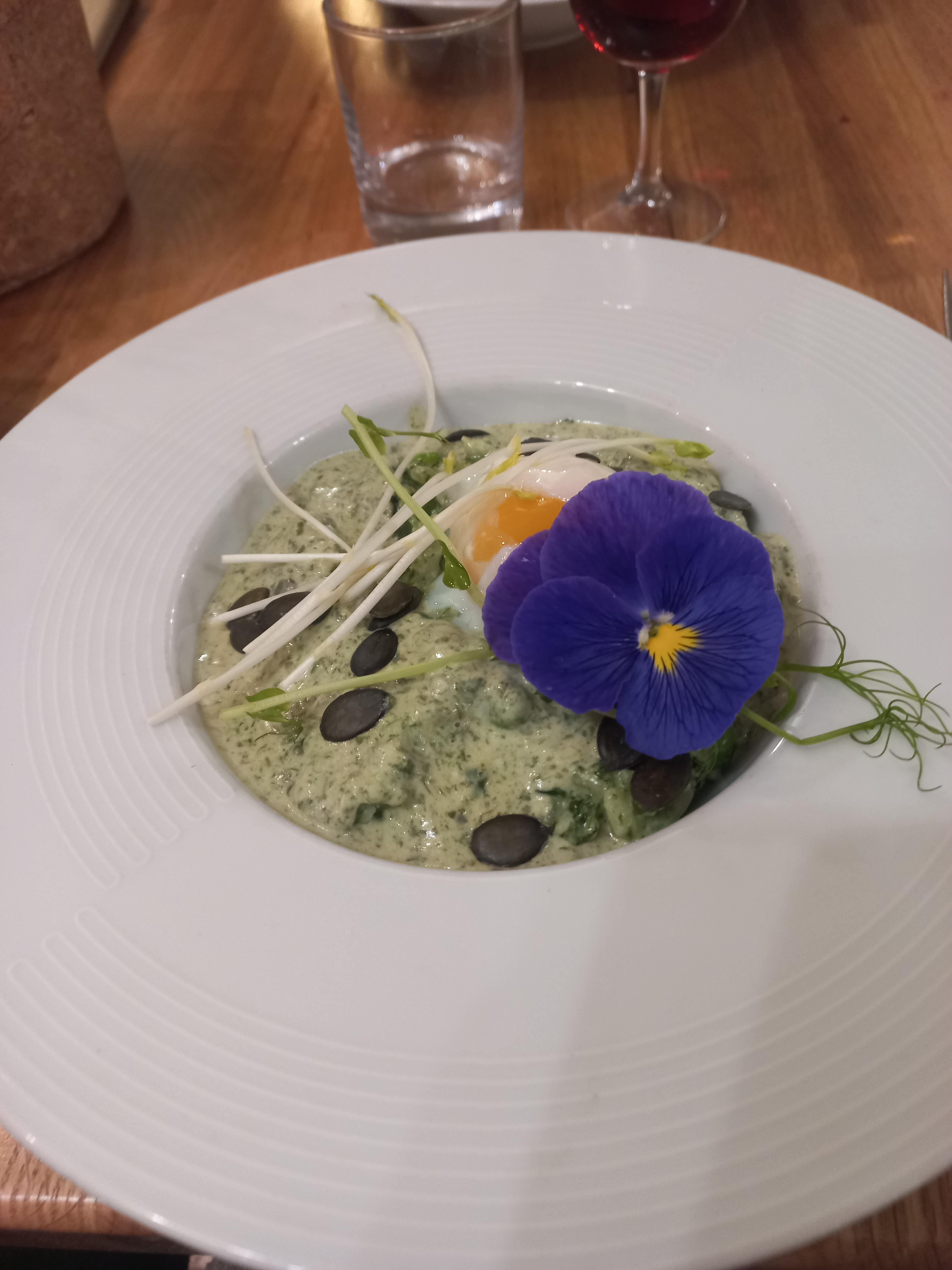 Nous avons adoré le lieux. Super accueil, plats frais qui changent régulièrement et préparés avec soin. Notre risotto verde était crémeux et goûteux! Mon mari a aussi bien apprécié l'entrée originale avec l'ail des ours. Le dessert à la meringue aussi trop bon... Nous avons très bien mangé. Merci aussi pour les explications données sur les plats.