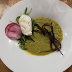 Un gaspaccio de légumes verts qui ressemble à un mouliné mixé des légumes de la veille et un filet mignon de porc beaucoup sec. Dommage. L'équipe n'est pas désagréable et l'emplacement est évidemment idéal dans cette rue.