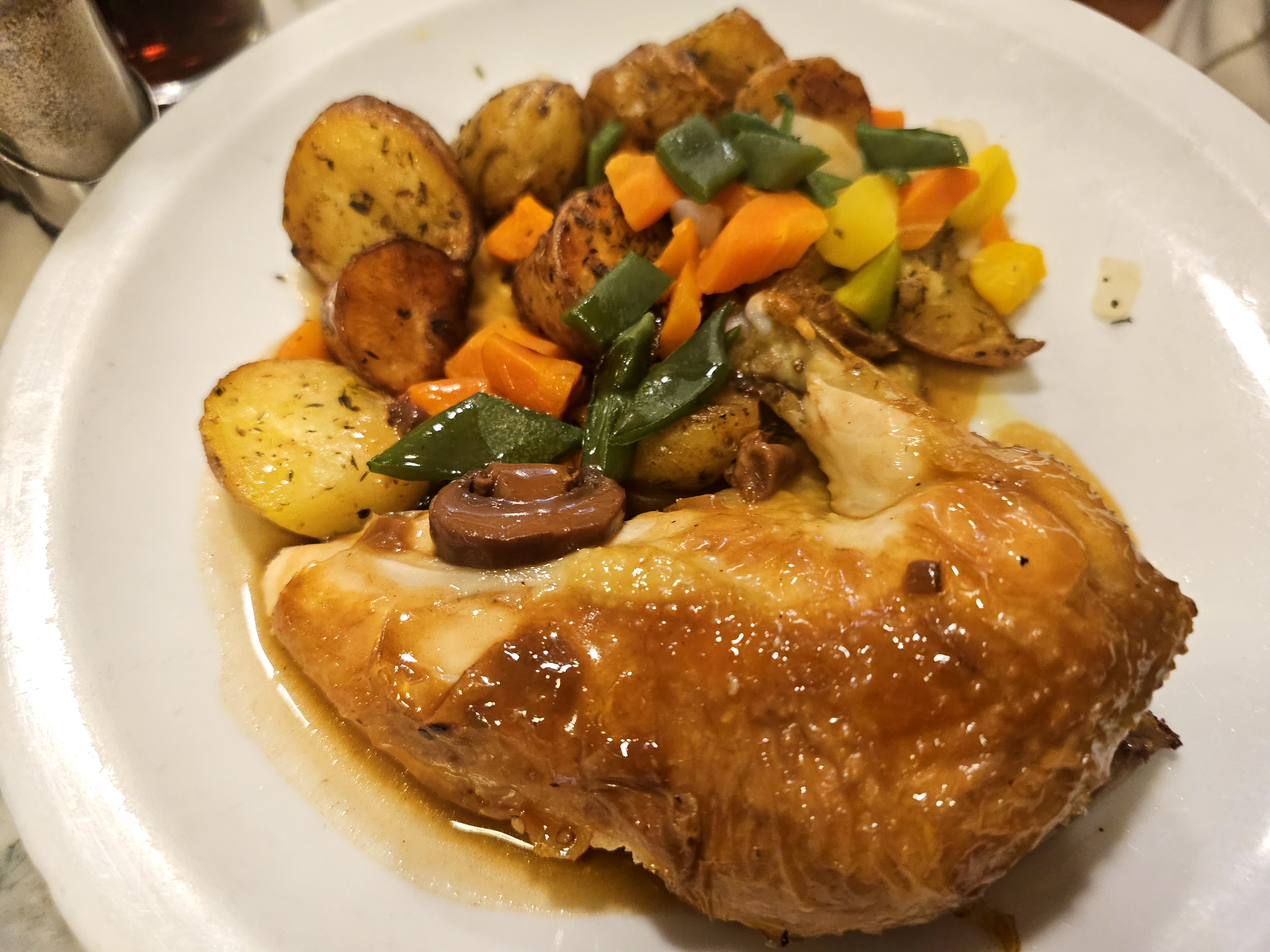 J'y suis allé plusieurs fois et jusqu'à présent j'ai jamais été déçu. Le poulet était suffisamment arrosé pour pas être sec et était bien goûteux. C'est le restaurant idéal pour manger et attendre le début du concert à l'Olympia. Mais je trouve que l'établissement a quand même perdu de sa superbe d'antan.