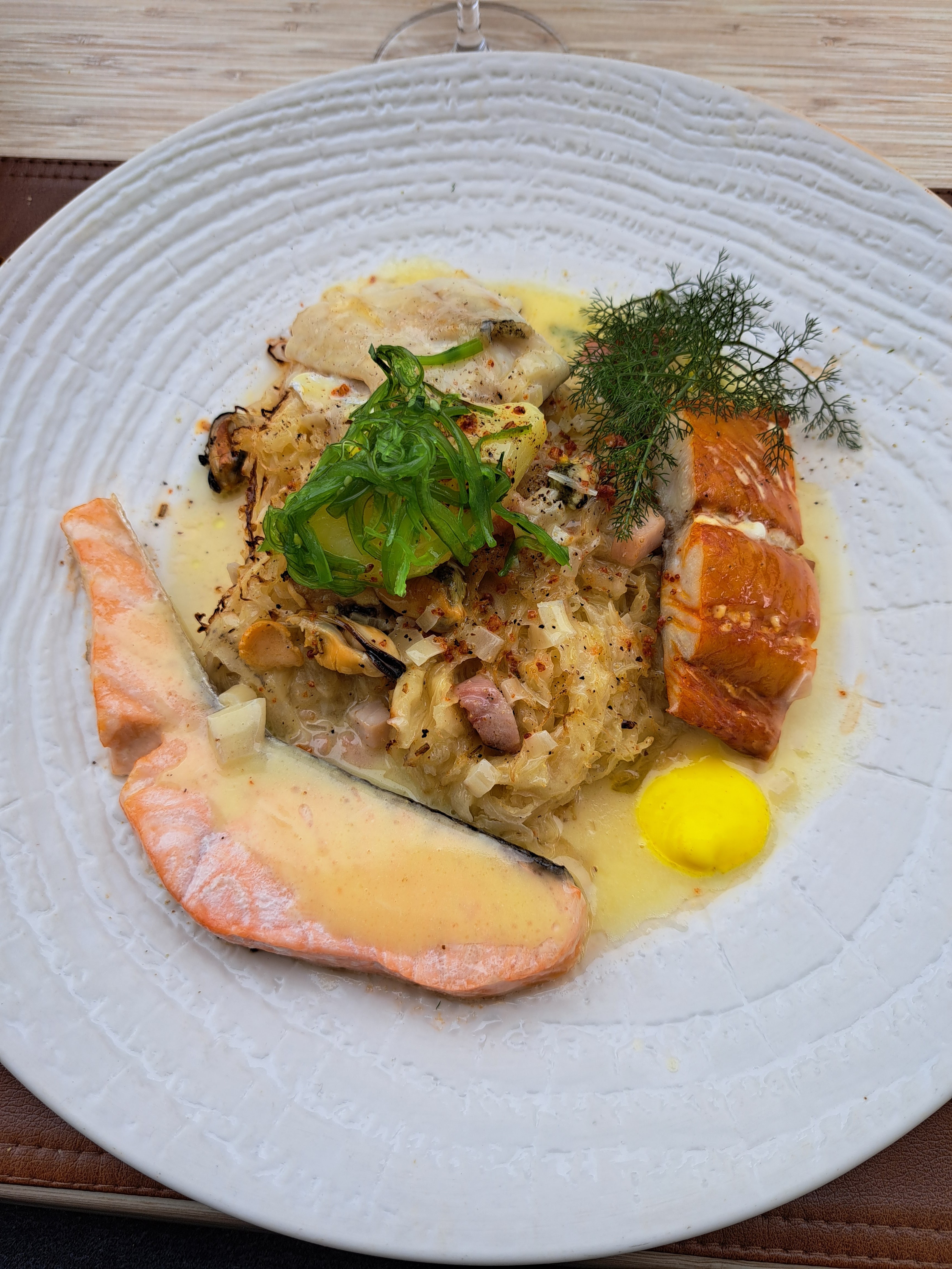 Nous avons apprécié la choucroute de la mer ainsi que le plat du jour et le milles feuilles au chocolat blanc