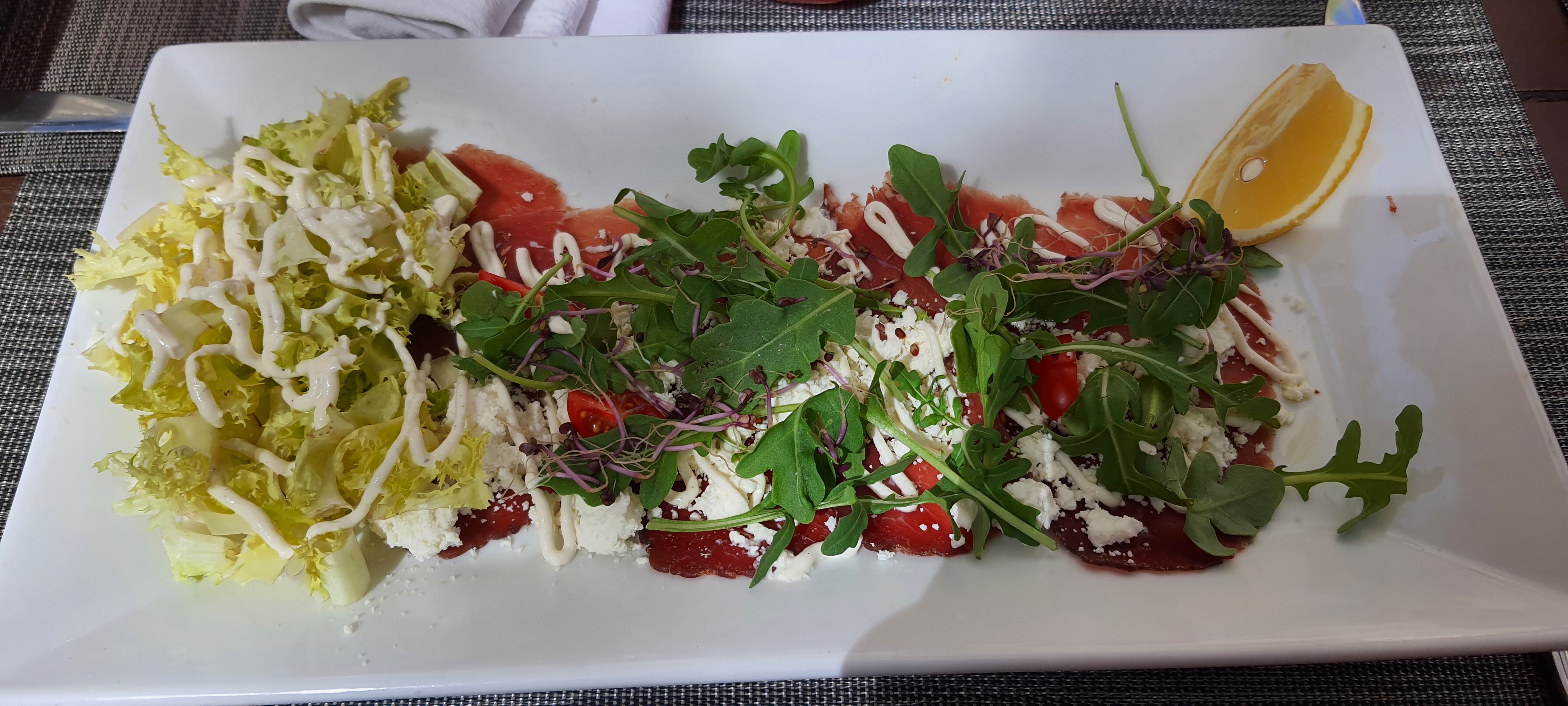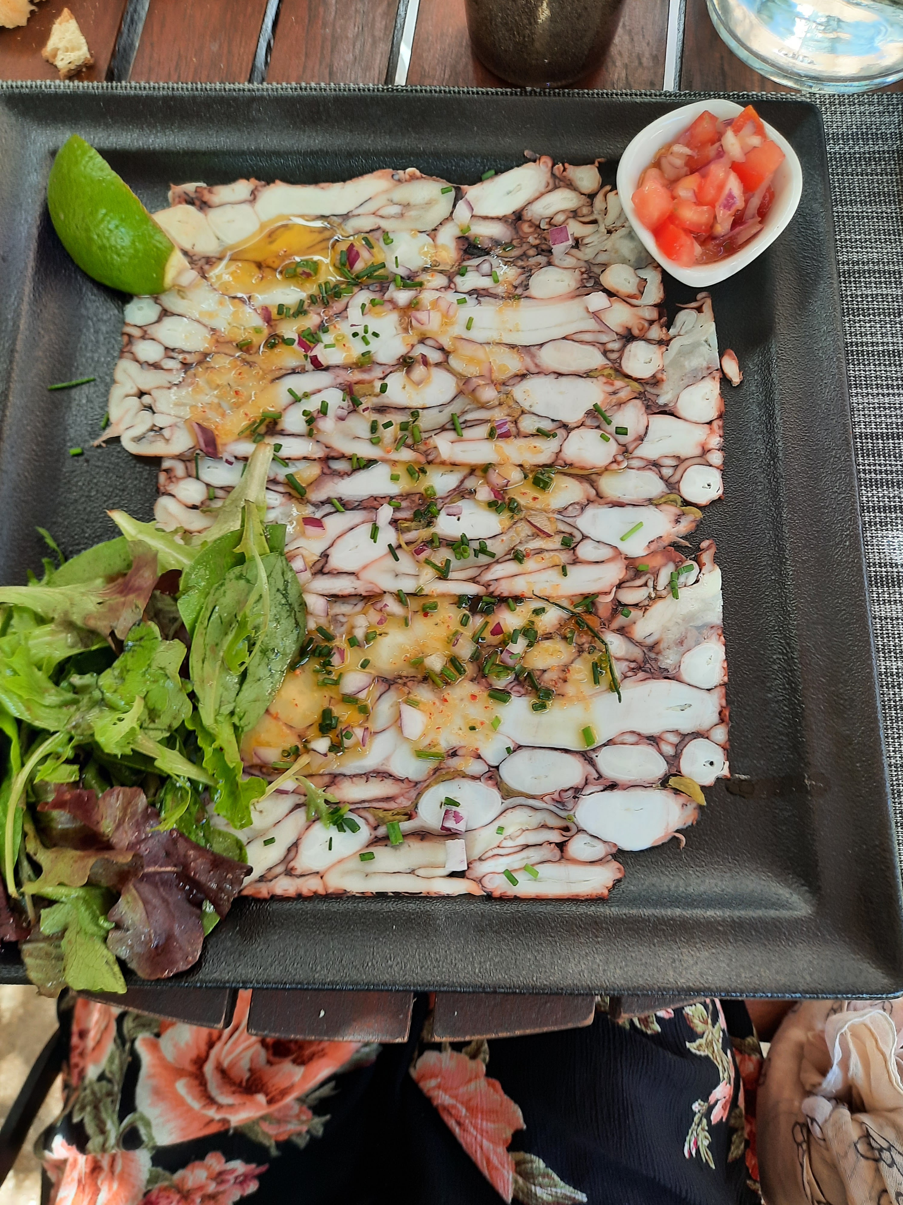suggestion du jour poulpe en carpaccio delicieux . Service au top . Je recommande !