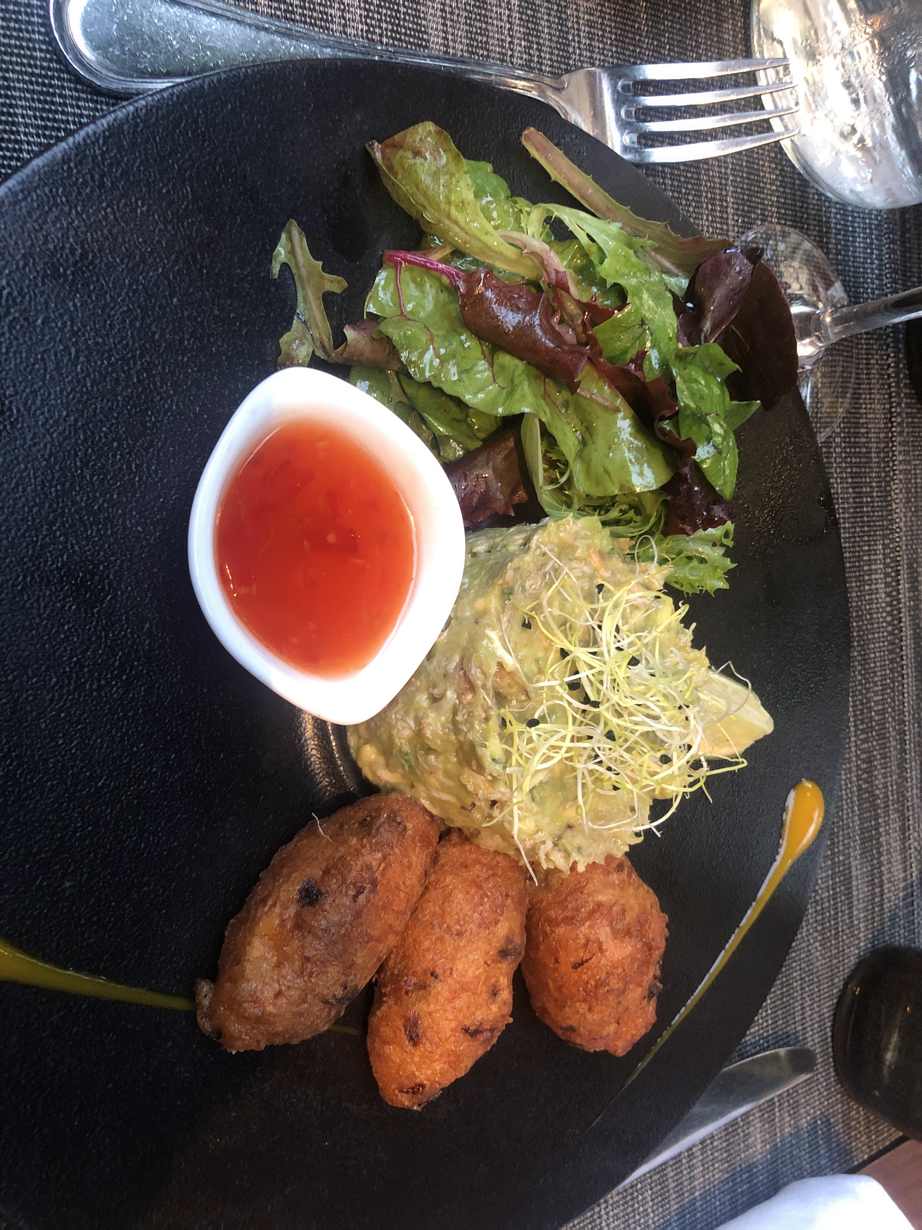 Super moment en amoureux. Petite musique qui berce sans être envahissante, cadre bucolique, un service au top et les cocktails étaient incroyables. Les plats étaient fameux, nous avons pris le tartare d'espadon, l'araignée de porc caramélisée et le rouget avec légumes croquants et le tout était délicieux.
