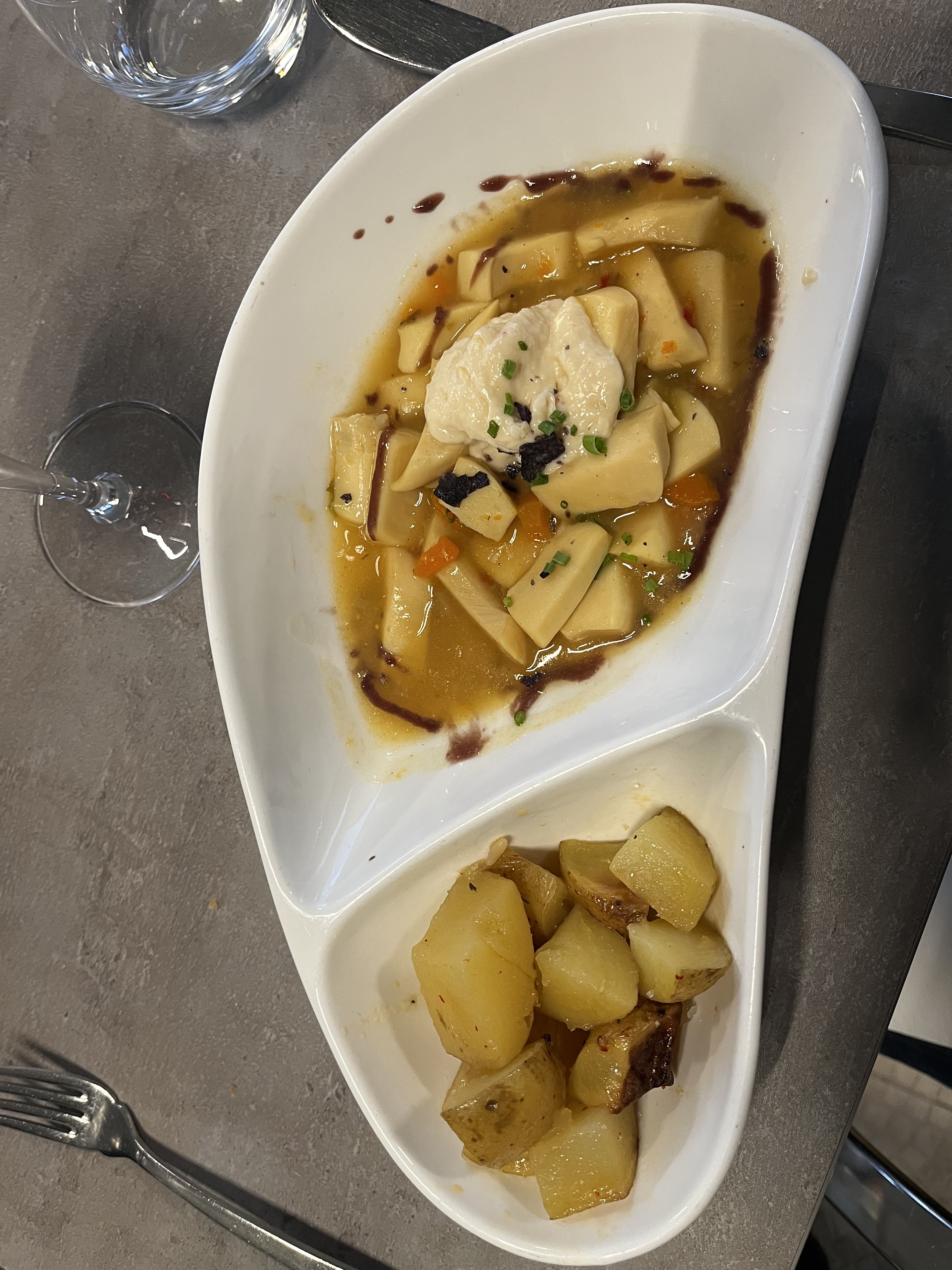 Lieu très calme, équipe accueillante, la terrine du chef est super, le ragoût de seiche aussi. Ma compagne a prit la cassolette de poisson. Clairement on s'est régalé c'est vraiment très chouette et surtout très copieux.