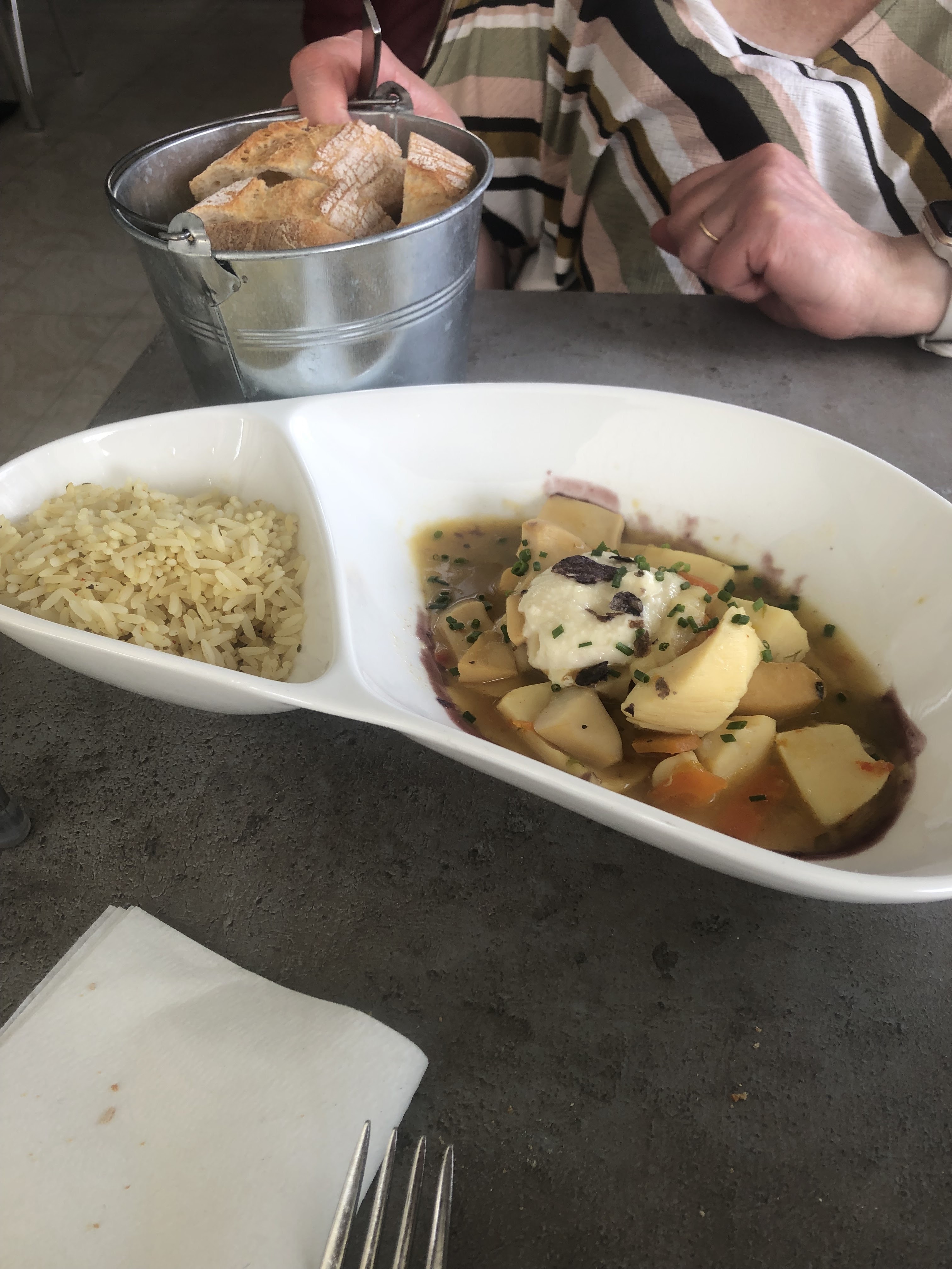 Repas excellent, adapté aux végétariens et sans gluten sur mesure ! Plats décorés avec soin, qualité et fraîcheur au RDV. Service impeccable et qui enchainer. Je recommande vivement cette belle découverte !