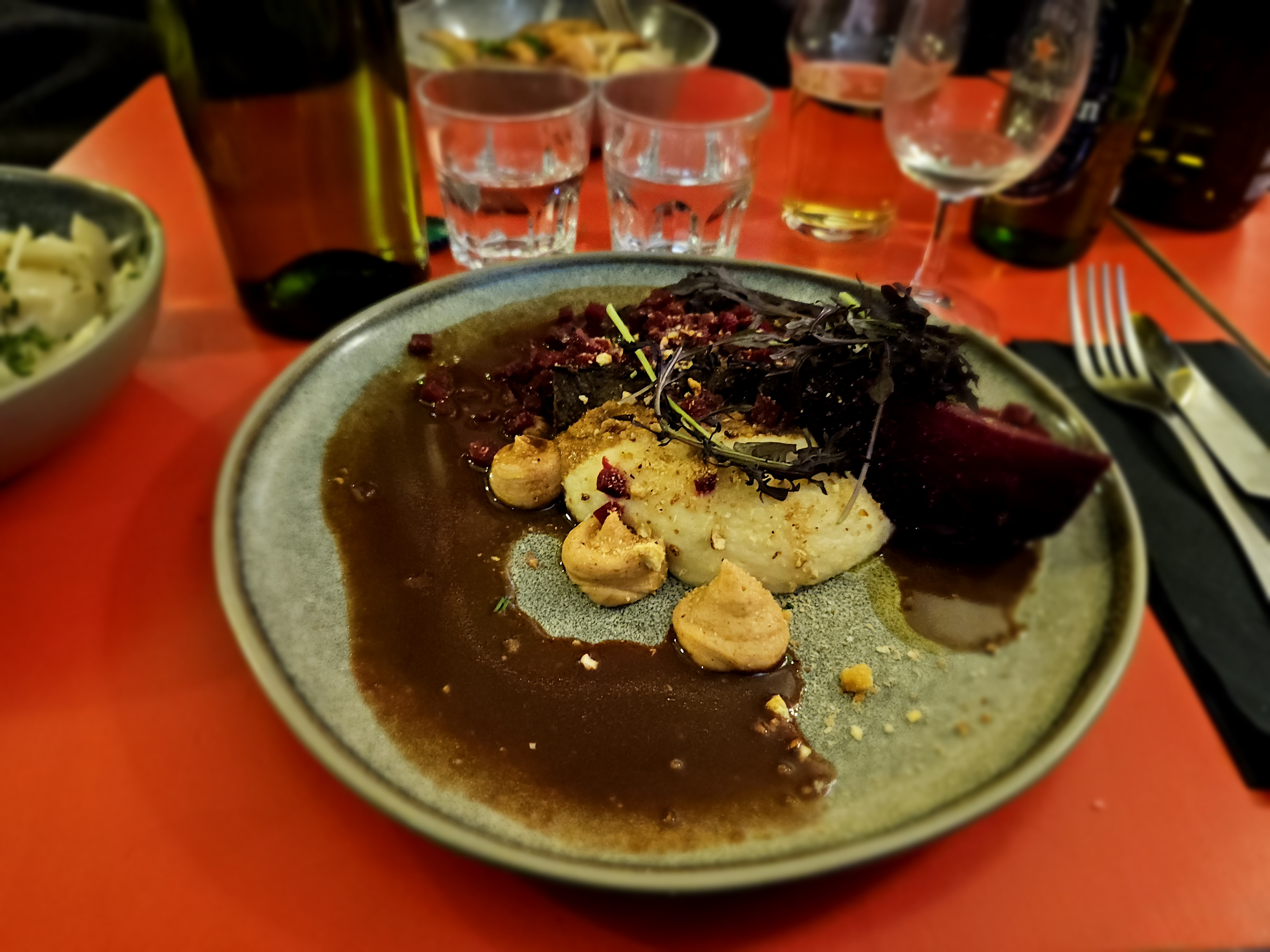 Le rapport qualité prix est vraiment très bon. Voila des gens qui se cassent un peu la tête en cuisine. Exemple : une queue de boeuf bouillie, reconstituée et servie croustillante dans un jus avec un belle carotte revenue et du chou cru.